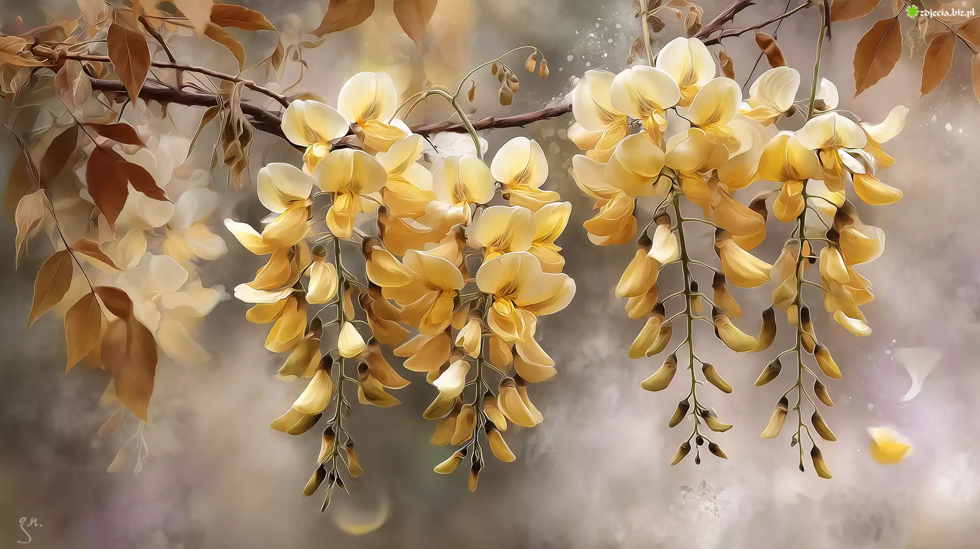Zdjęcie Gałązka, Złotokap, Żółte, Kwiaty, Grafika AI