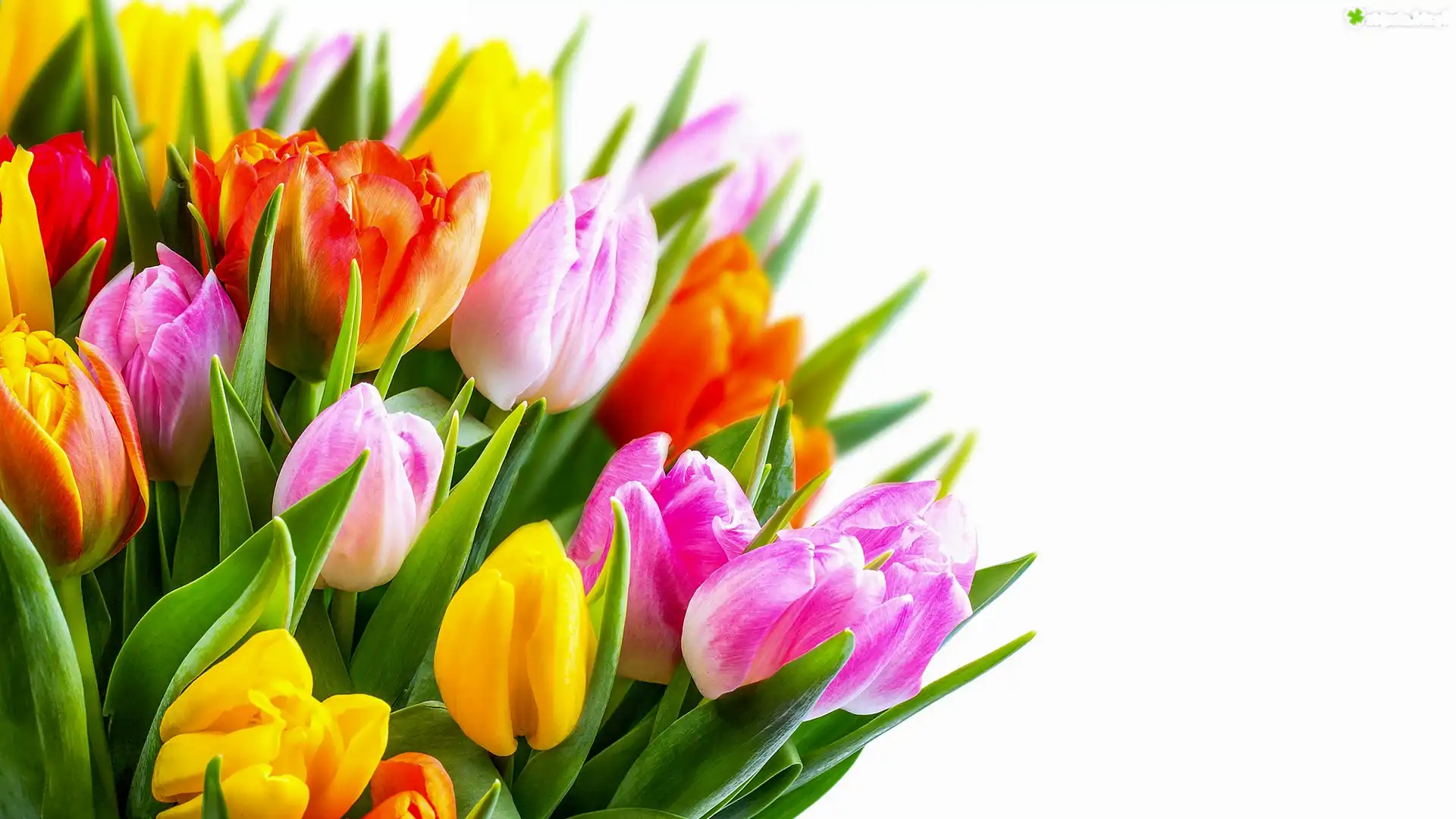 Zdjęcie Kwiaty, Bukiet, Kolorowe, Tulipany, Białe, Tło