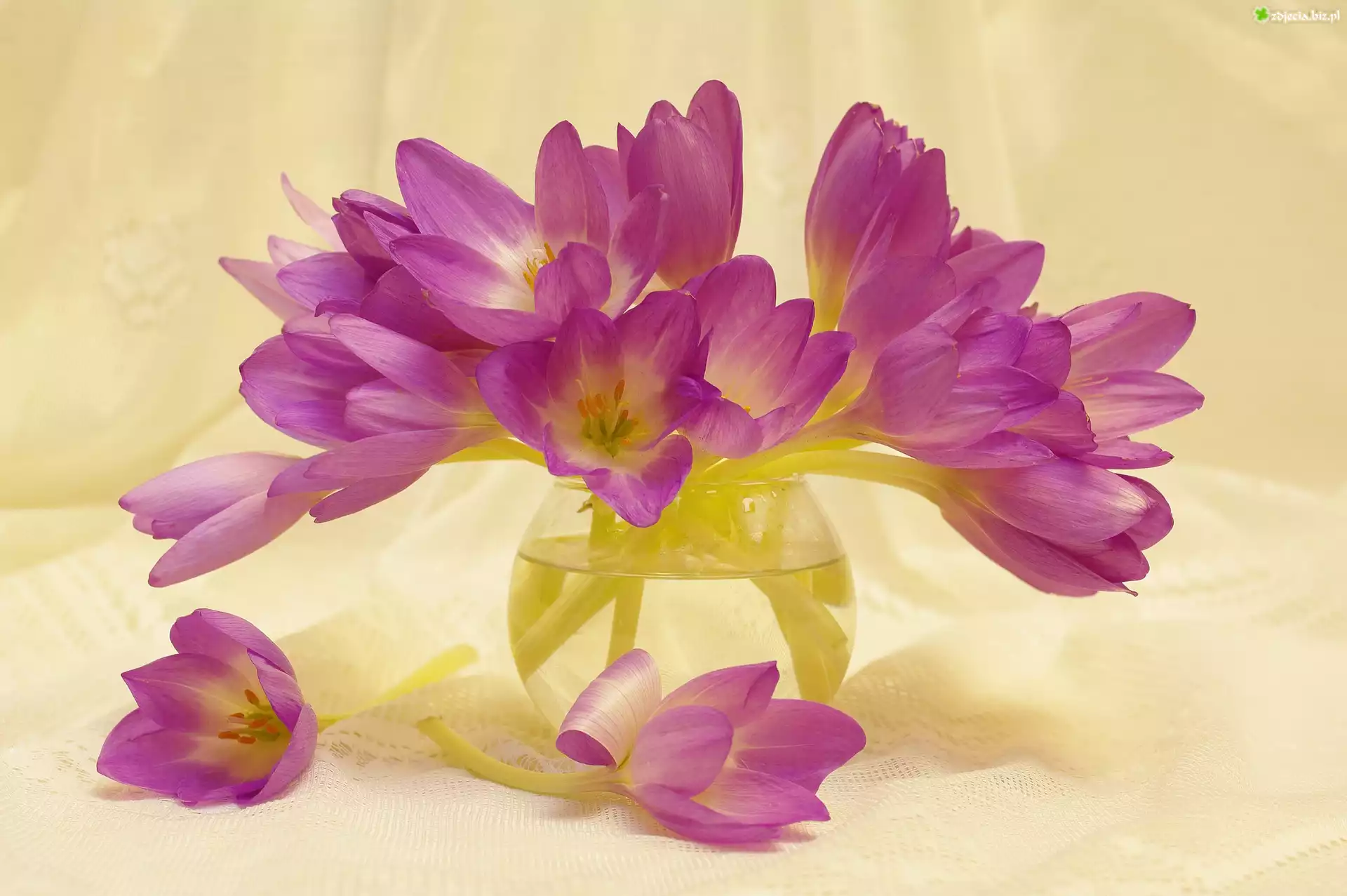Zdjęcie, Kwiaty, Krokusy, Bukiecik, Wazonik