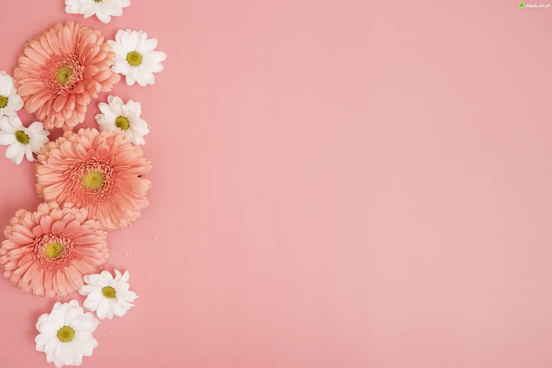 Zdjęcie, Kwiaty, Gerbery, Białe, Chryzantemy, Krople