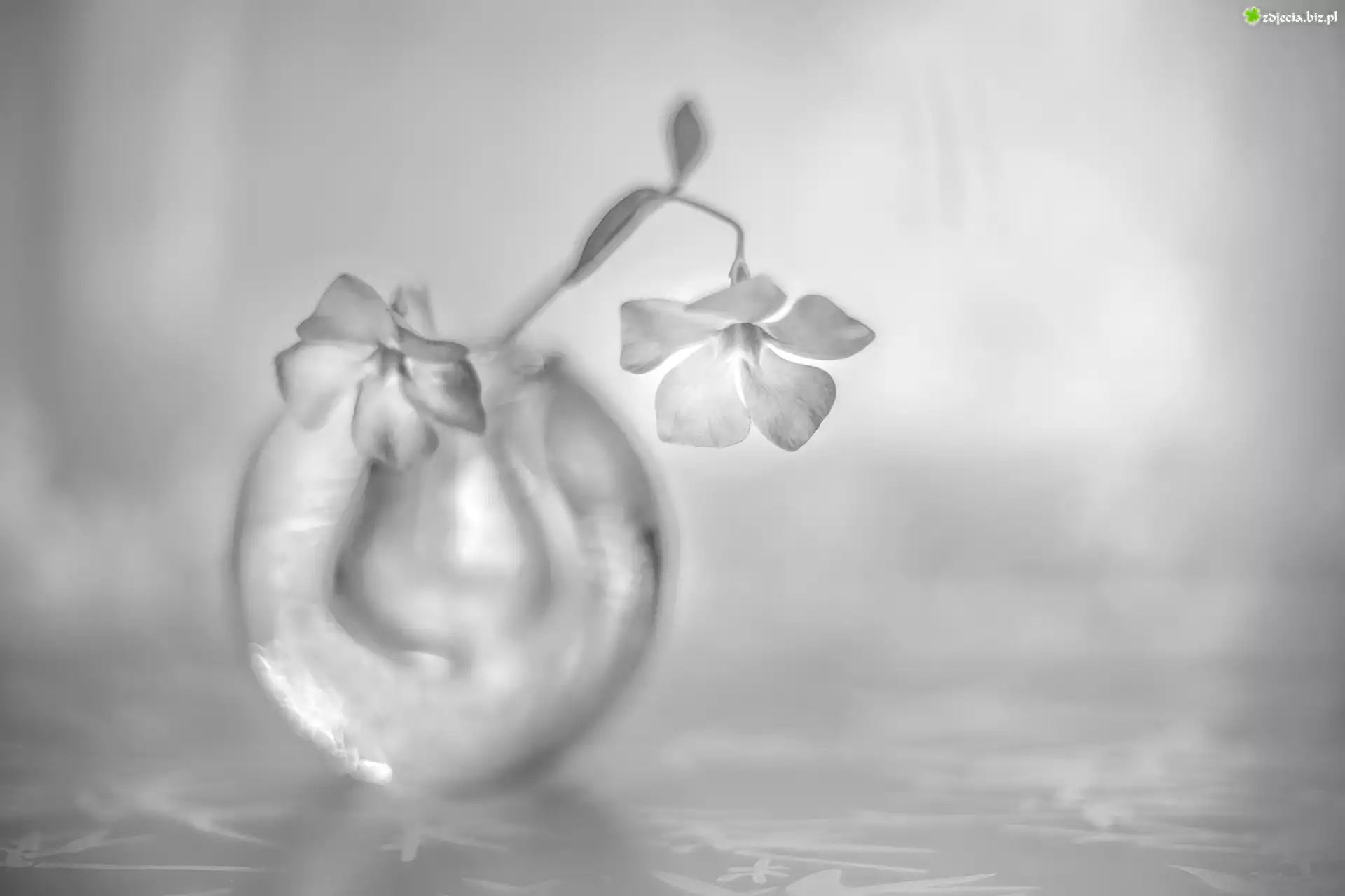 Zdjęcie Kwiaty, Barwinek, Szklany, Wazonik, Czarno-białe