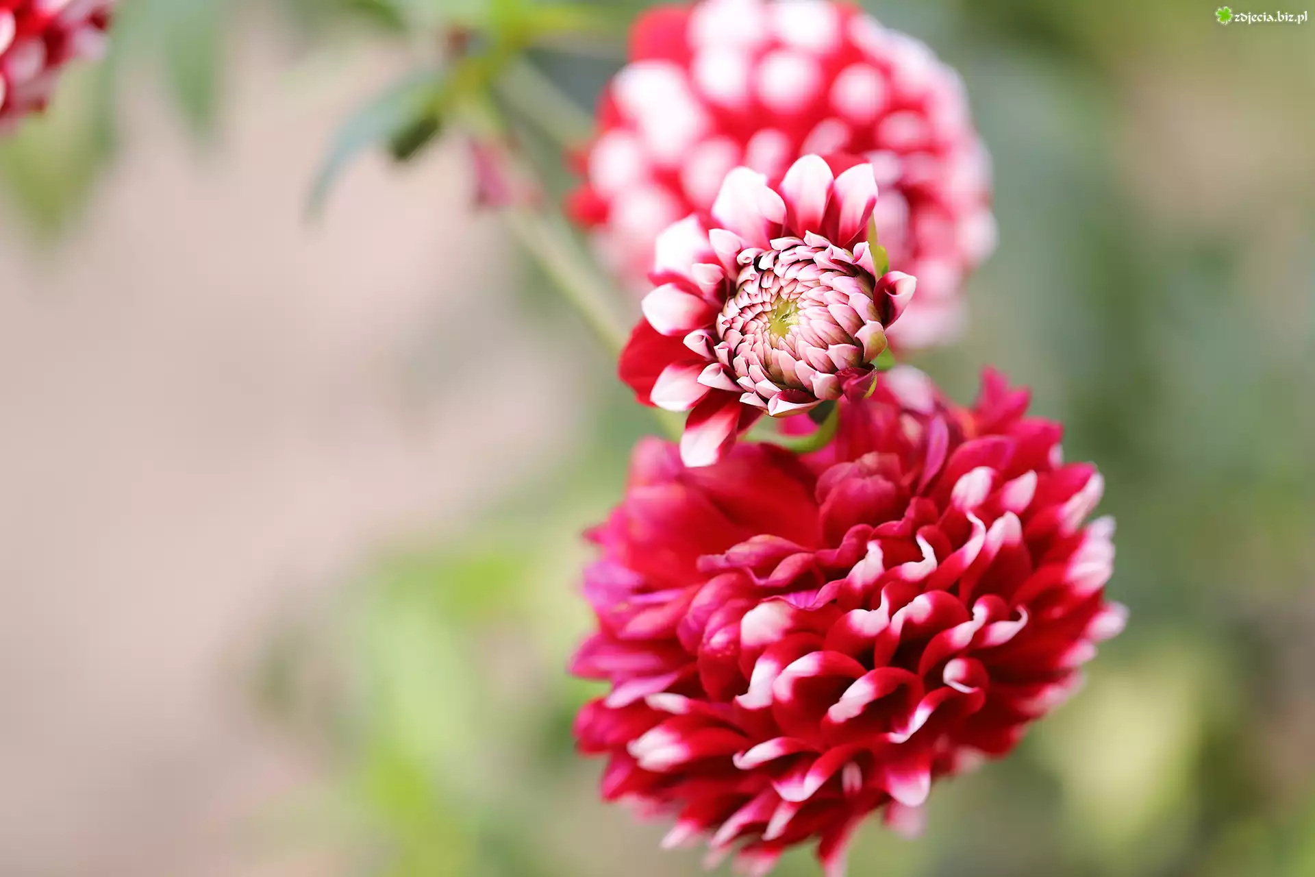 Zdjęcie, Dalie, Biało czerwone, Kwiaty