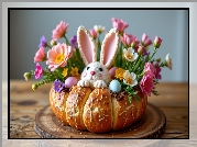 Zdjęcie, Wielkanoc, Chleb, Królik, Kwiaty, Jajka, Deska