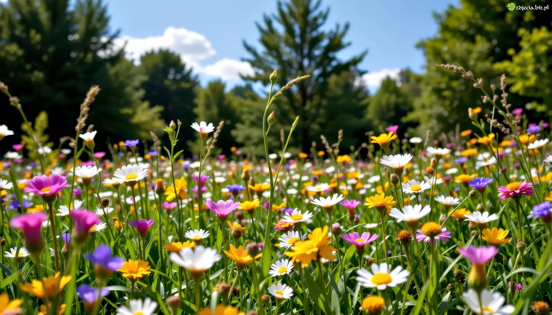 Zdjęcie Łąka, Kwiaty, Drzewa, Grafika AI