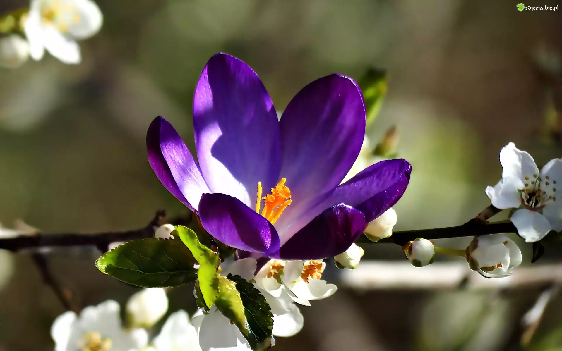 Zdjęcie Kwiaty, Krokus, Gałązka, Drzewa, Owocowego