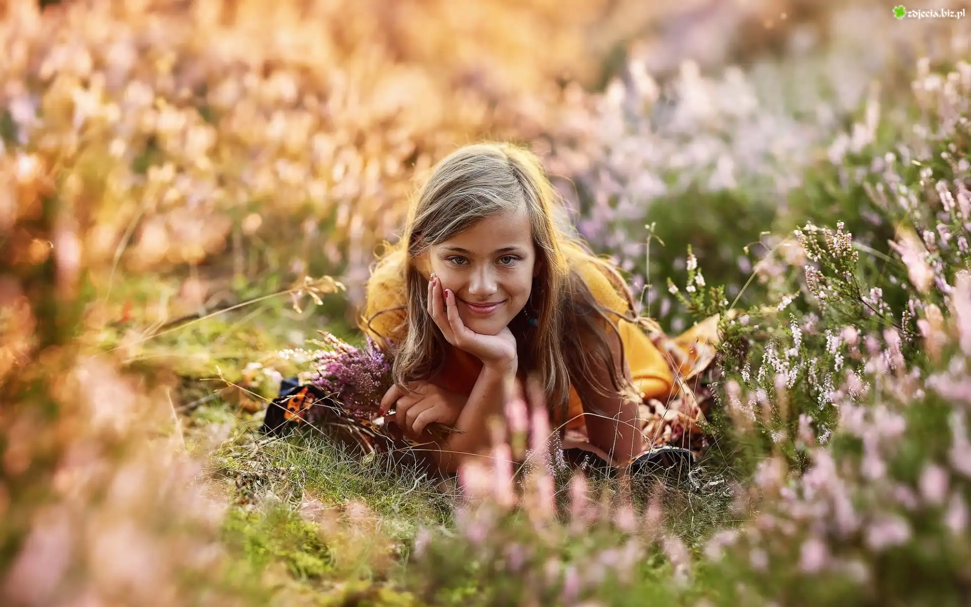 Zdjęcie, Dziewczyna, Kwiaty, Rośliny