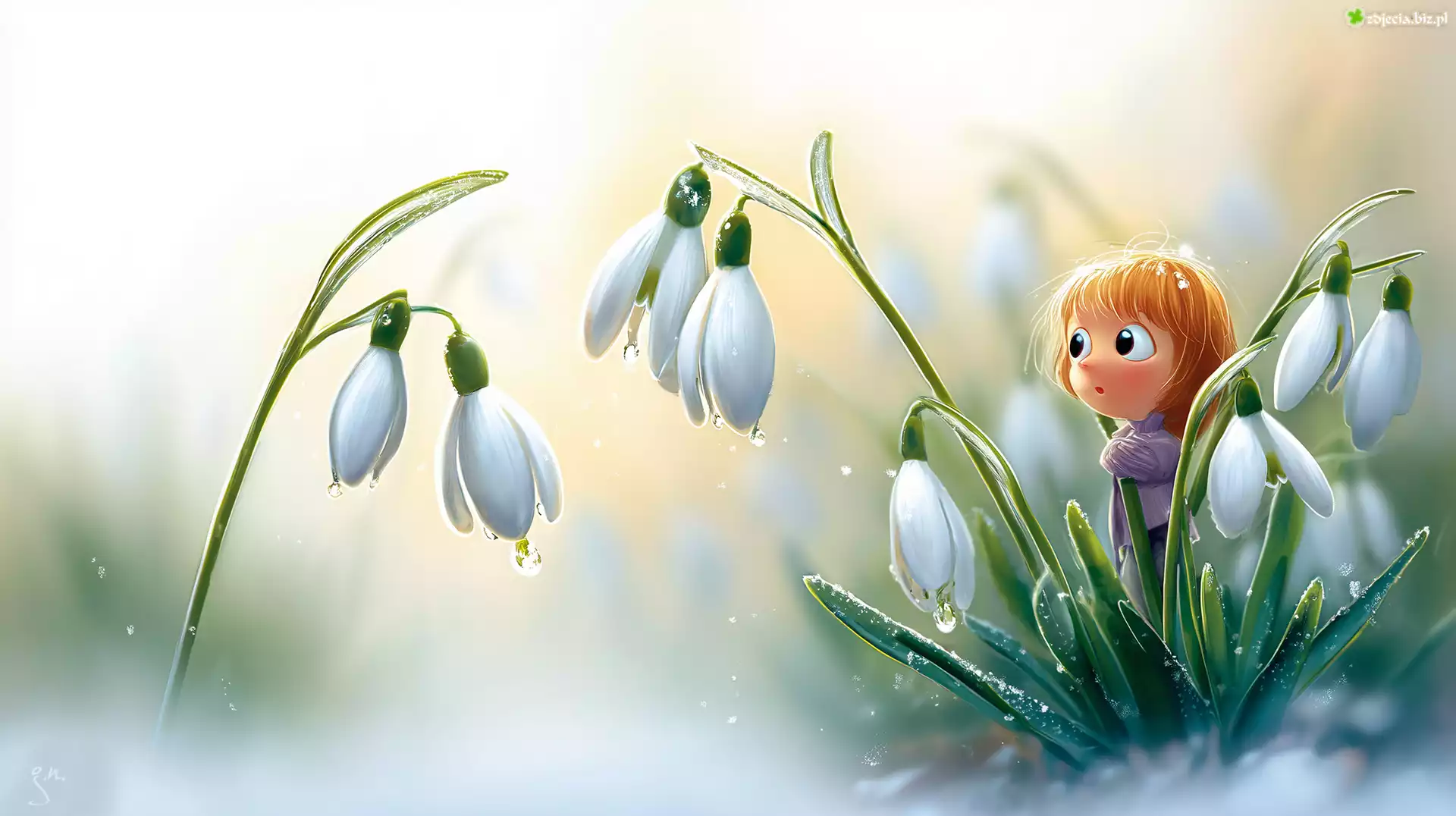 Zdjęcie Przebiśniegi, Kwiaty, Dziewczynka, Grafika AI