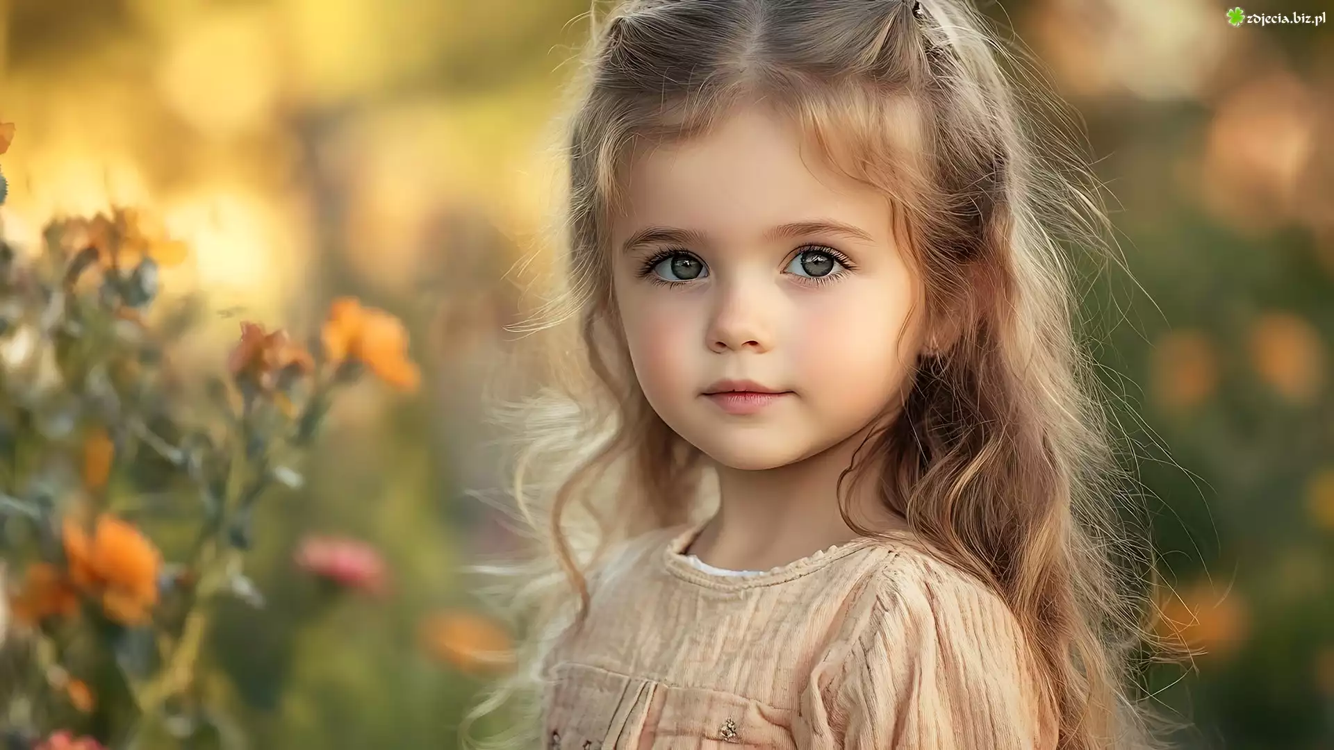 Zdjęcie Dziewczynka, Długowłosa, Blondynka, Kwiaty