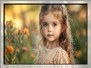 Zdjęcie, Dziewczynka, Długowłosa, Blondynka, Kwiaty