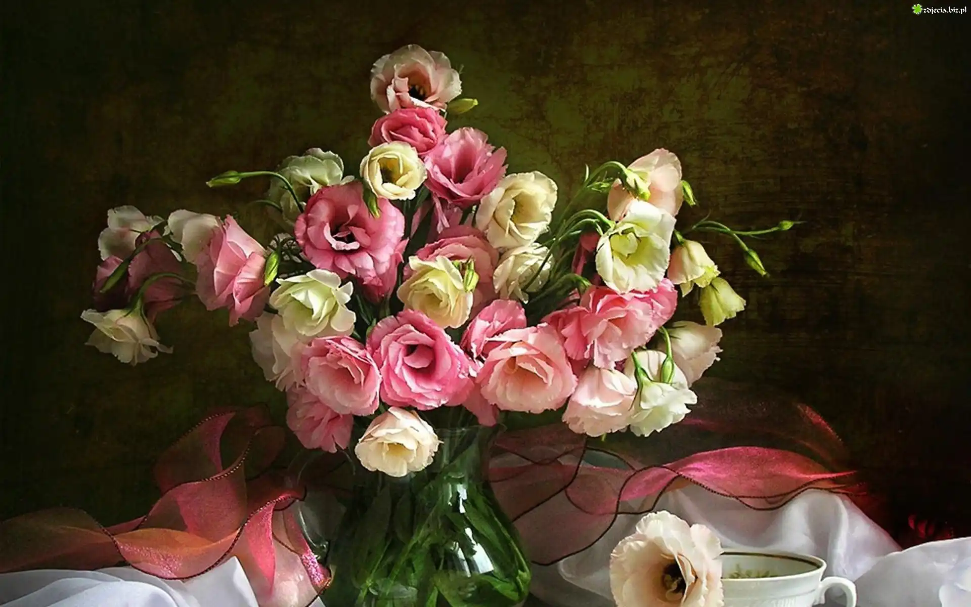Zdjęcie Kwiaty, Bukiet, Eustoma, Filiżanka