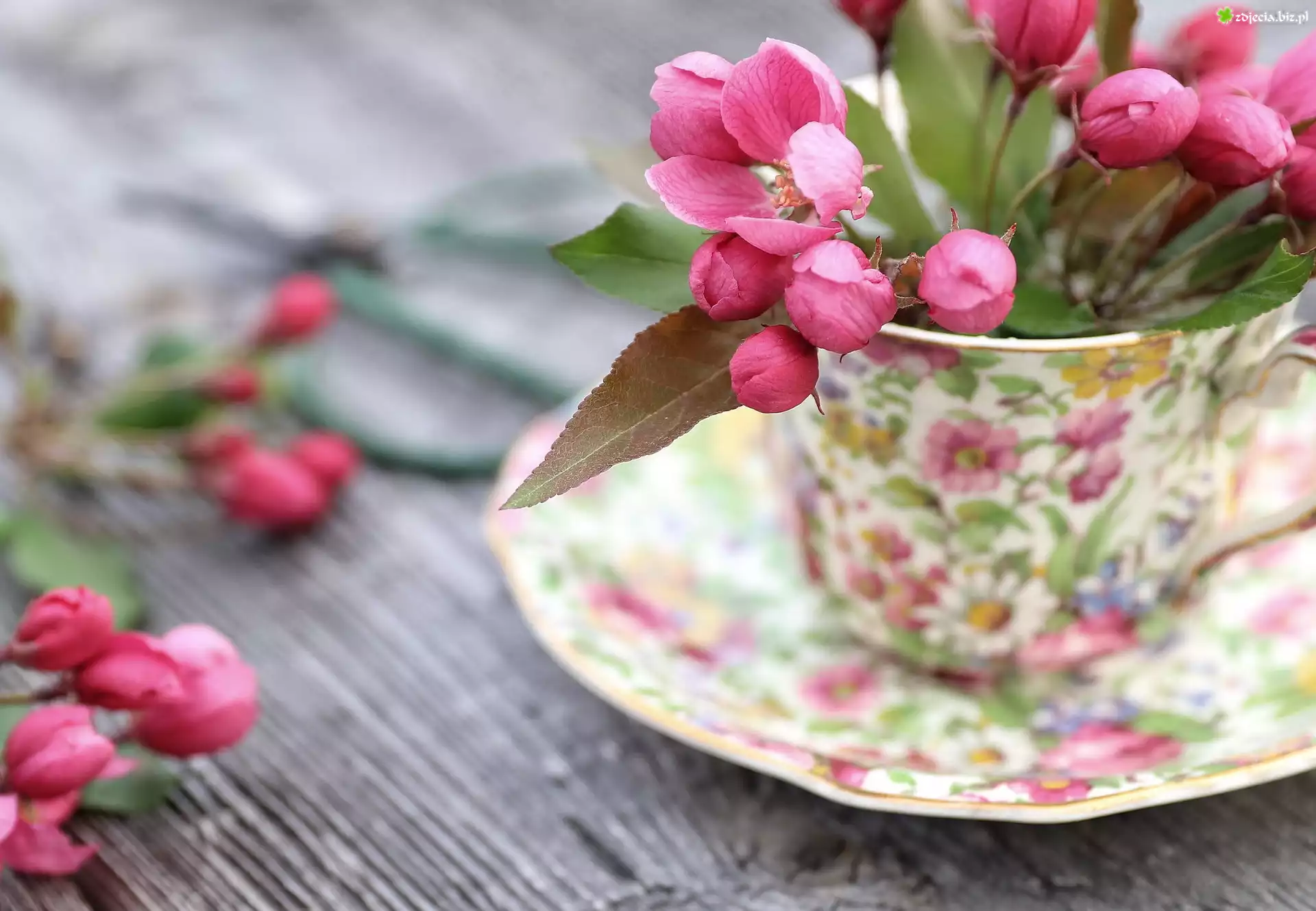 Zdjęcie, Kwiaty, Dekoracja, Filiżanka, Talerzyk