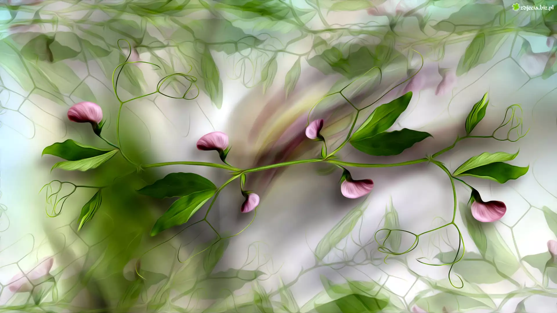 Zdjęcie, Gałązka, Kwiaty, Groszek pachnący, Pąki, Liście, Grafika