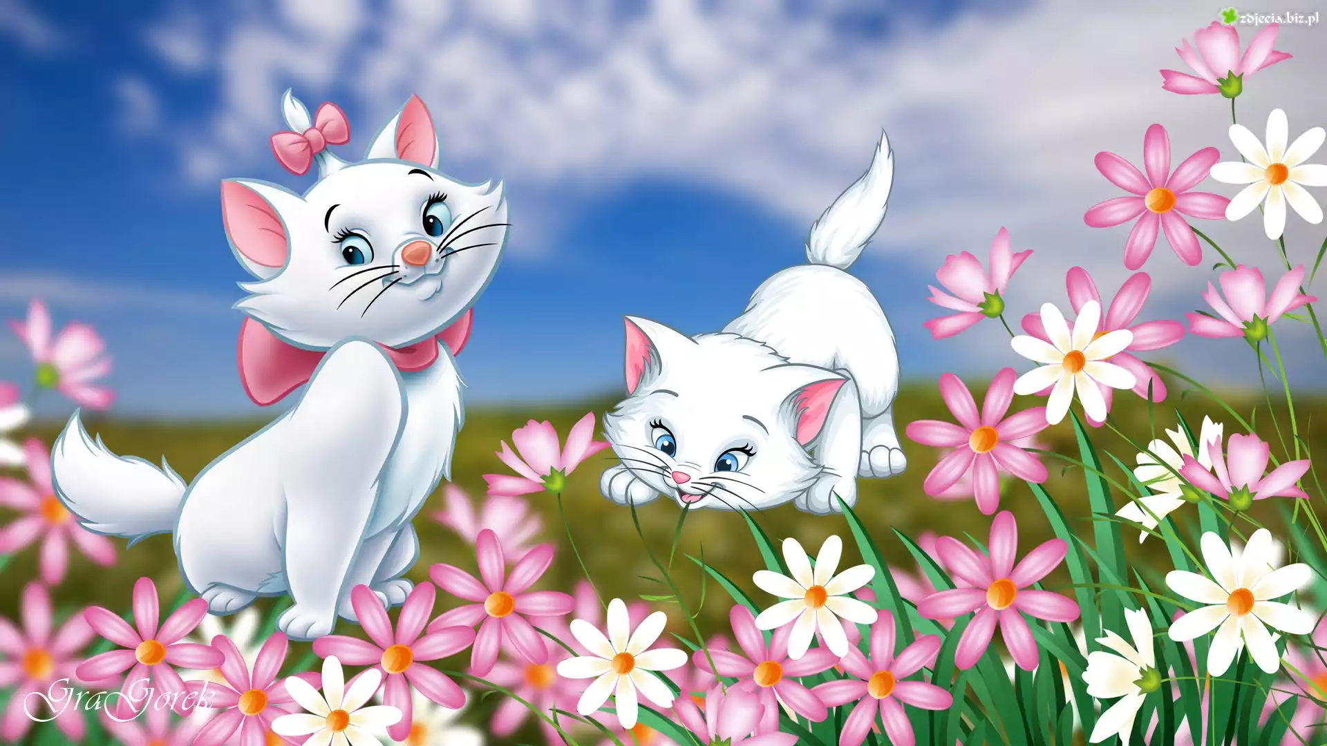 Zdjęcie Kotki, Kwiaty, Grafika, Dla dzieci