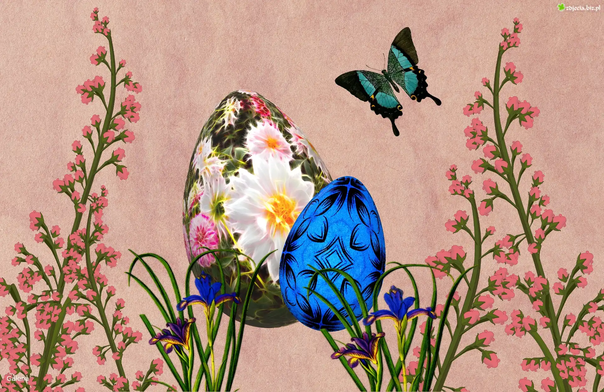Zdjęcie Kwiaty, Jajka, Motyl, Grafika, Wielkanoc