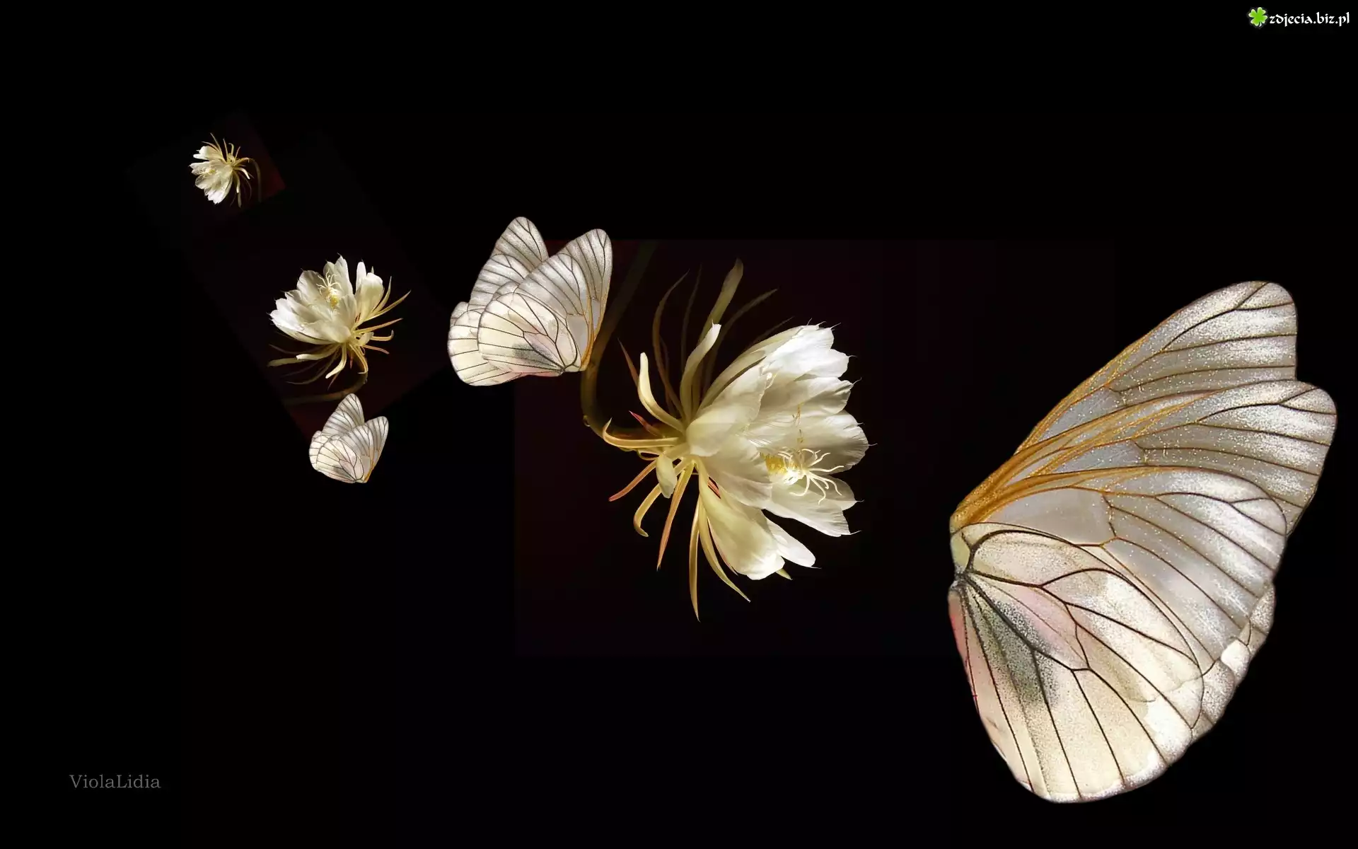 Zdjęcie, Grafika, Kwiaty, Motyle