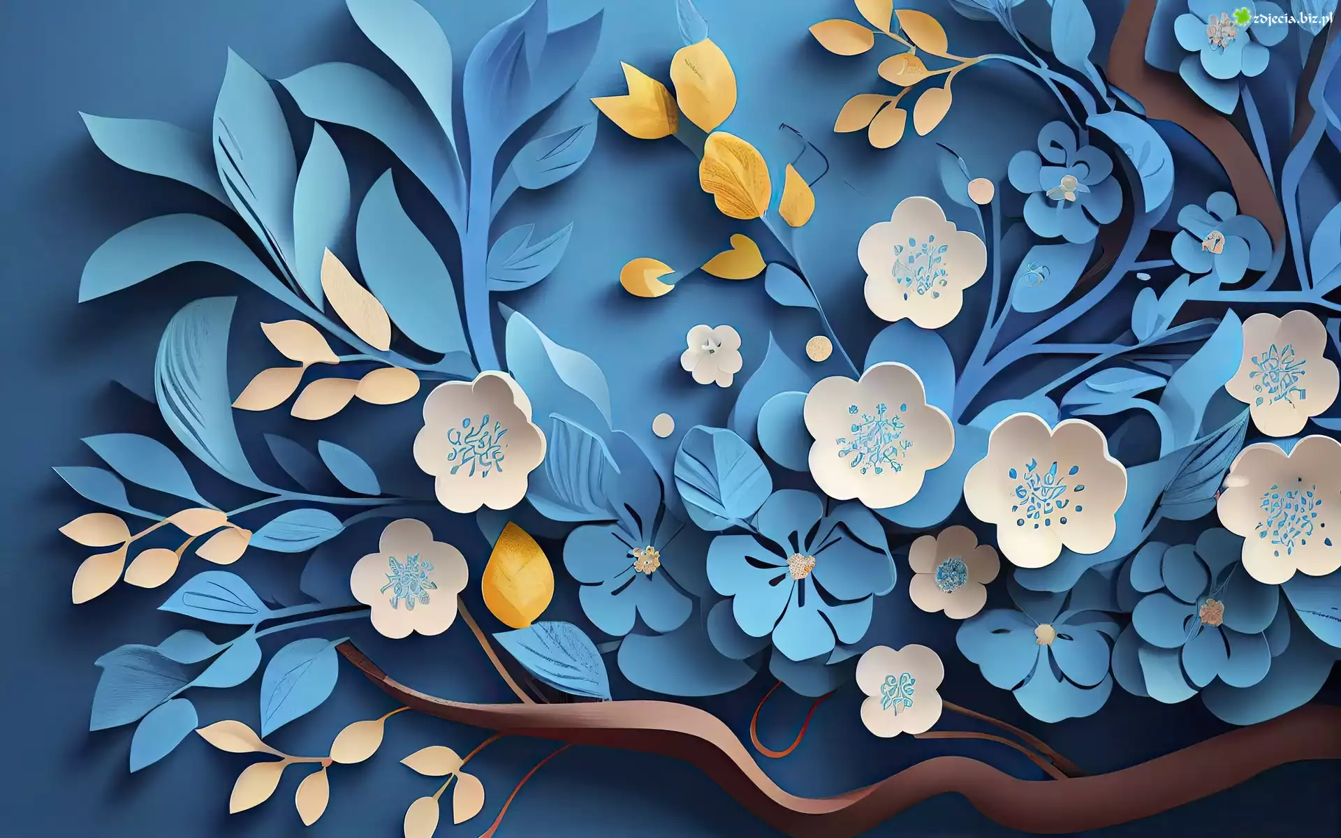 Zdjęcie Grafika, Biało-niebieskie, Kwiaty