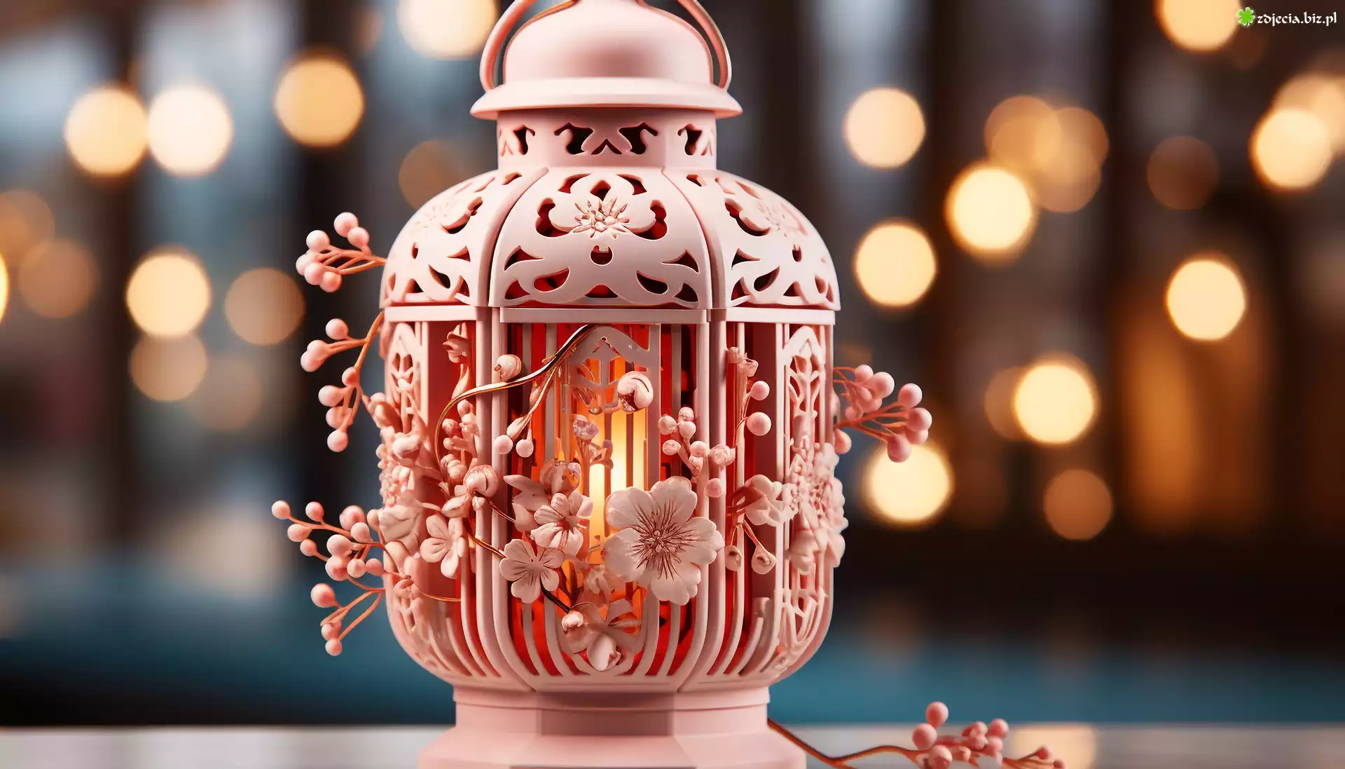 Zdjęcie Różowy, Lampion, Ornament, Kwiaty, Światła, Grafika