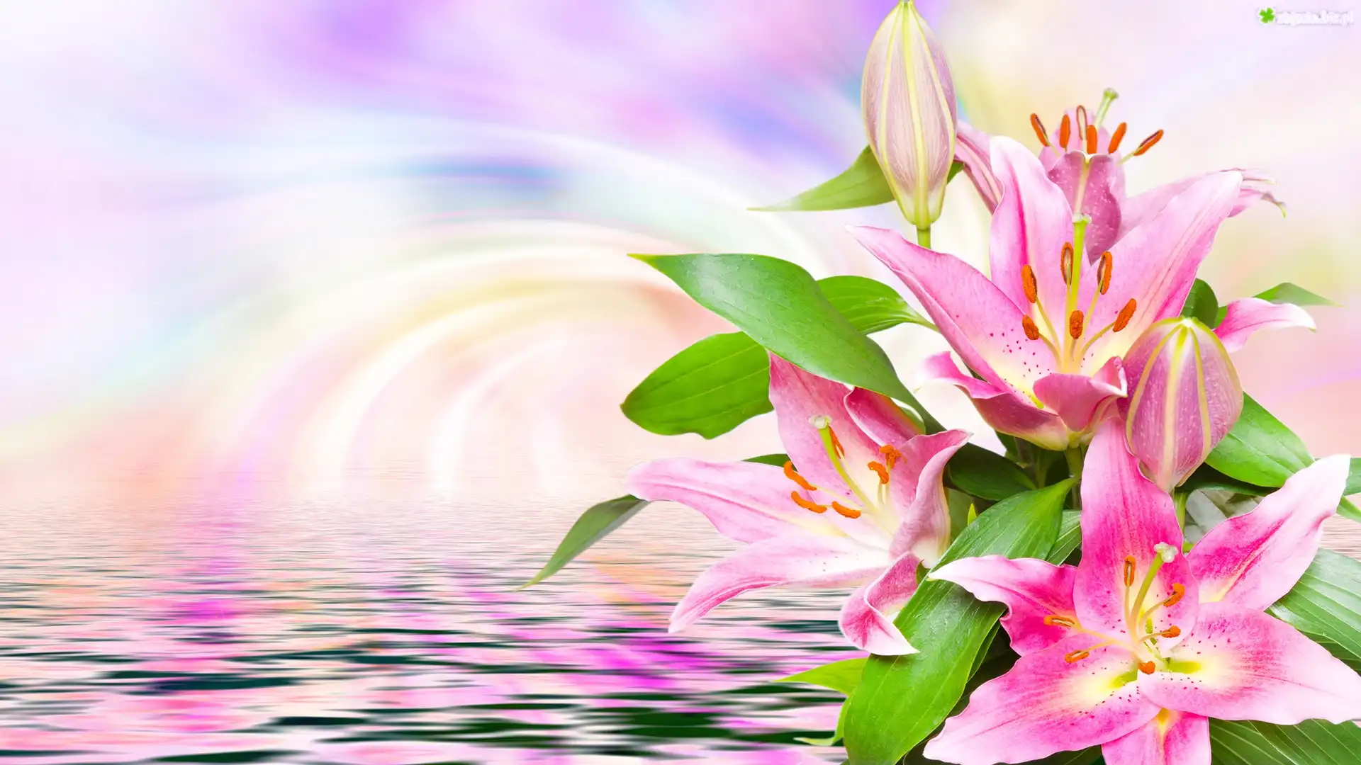 Zdjęcie Kwiaty, Lilie, Woda, Grafika 2D