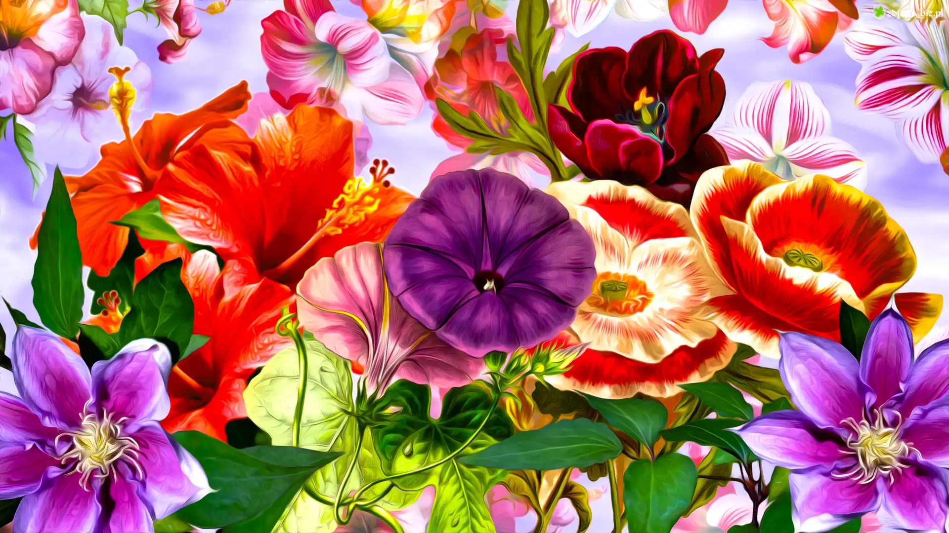 Zdjęcie Kwiaty, Maki, Powojnik, Hibiskus, Grafika
