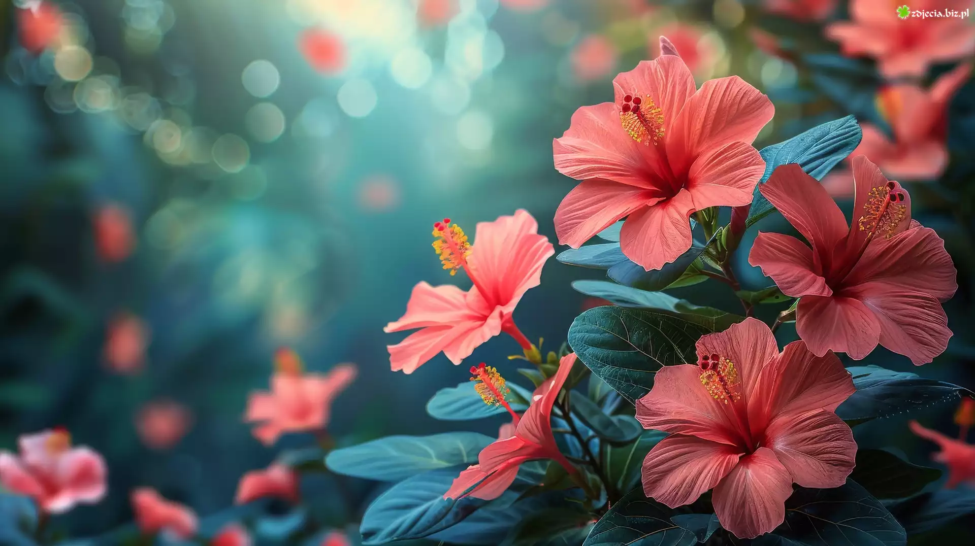 Zdjęcie Kolorowe, Kwiaty, Hibiskusy, Tło, Grafika