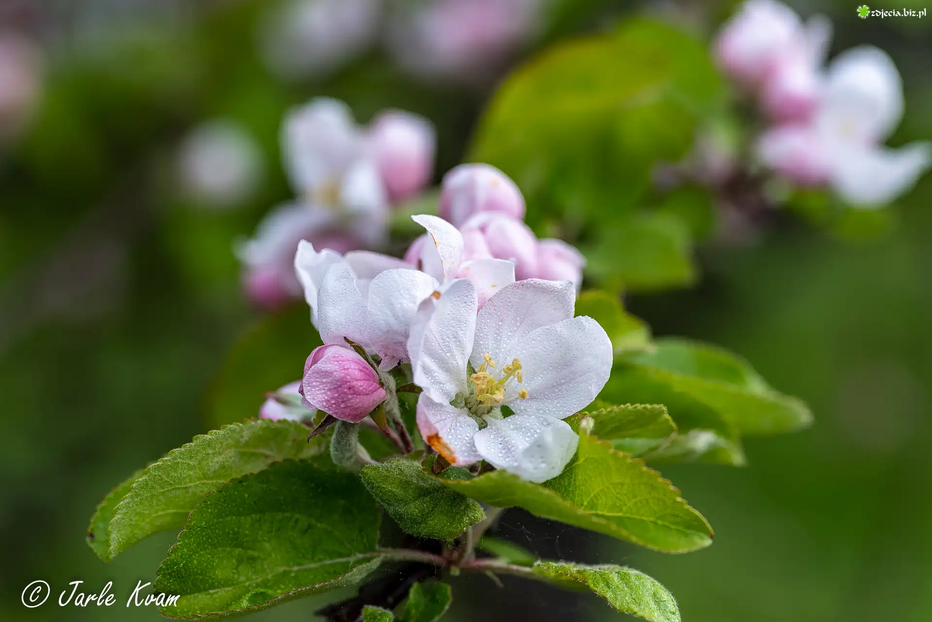 Zdjęcie Gałązka, Kwiaty, Jabłoni, Pąki, Liście