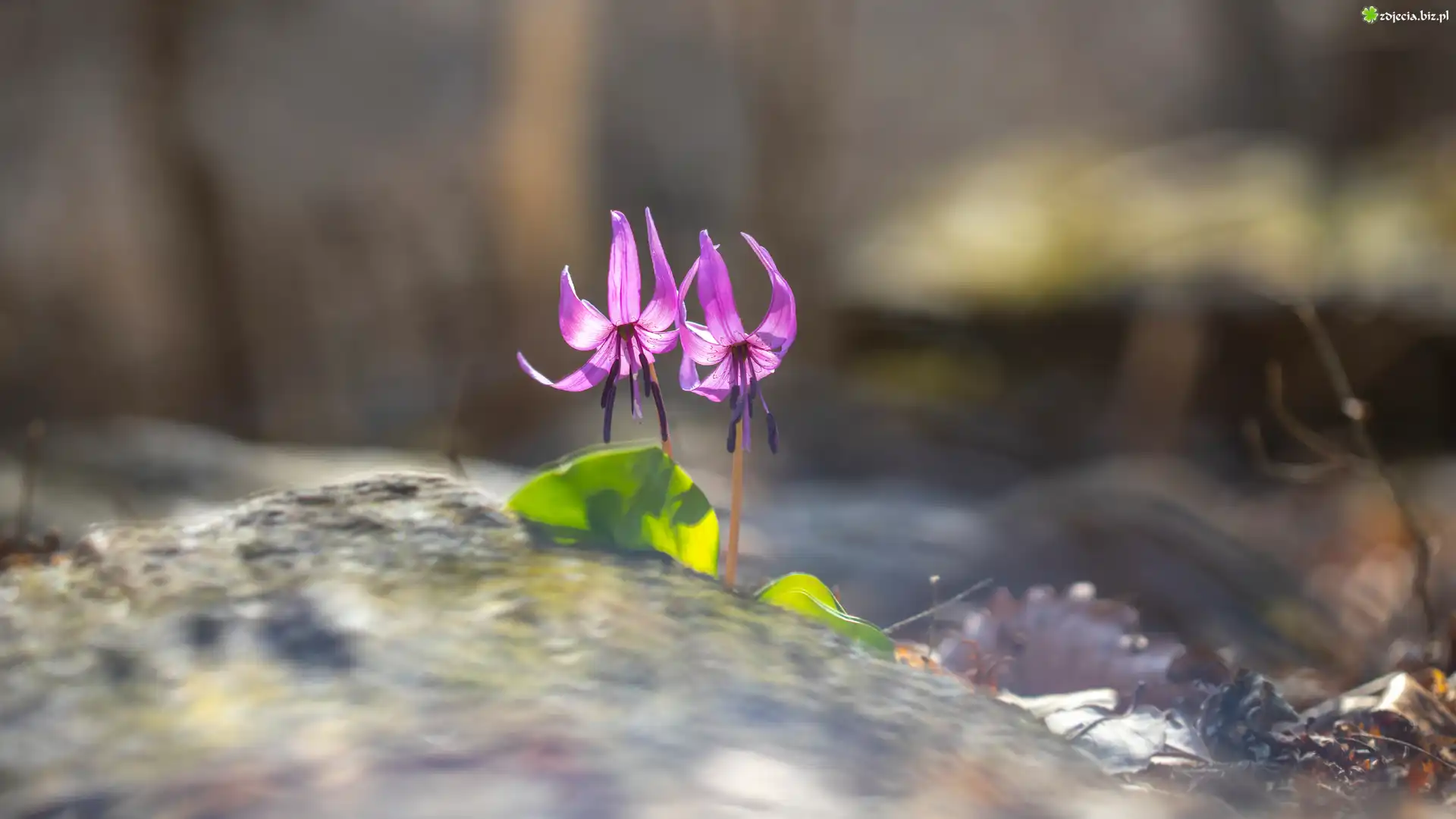 Zdjęcie, Jasnoróżowe, Kwiaty, Dwa, Psizęby liliowe, Rozmyte tło