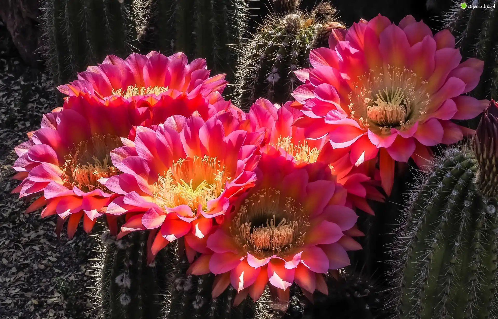 Zdjęcie, Kaktusy, Kwiaty, Światło