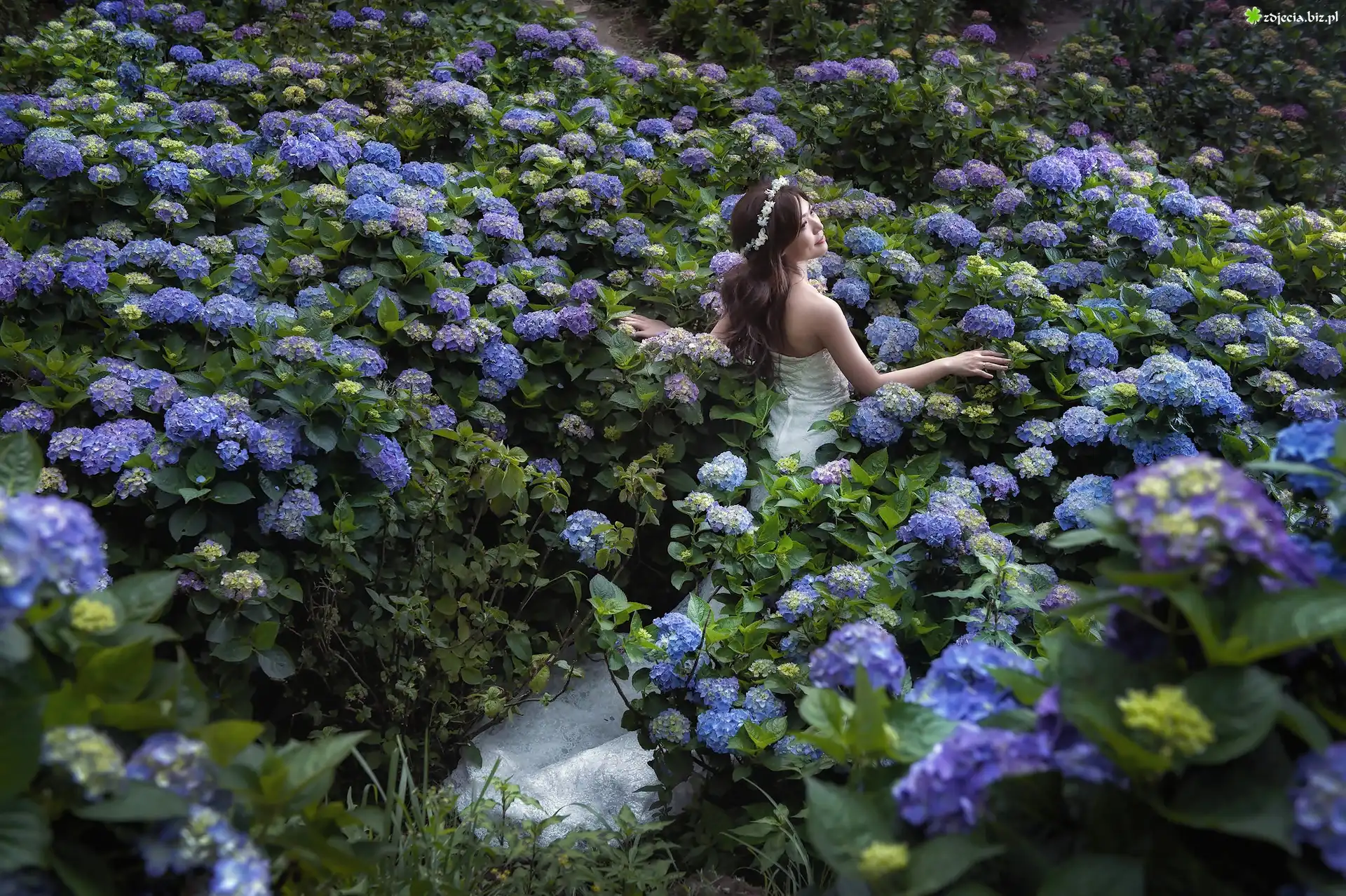 Zdjęcie Kobieta, Kwiaty, Hortensje