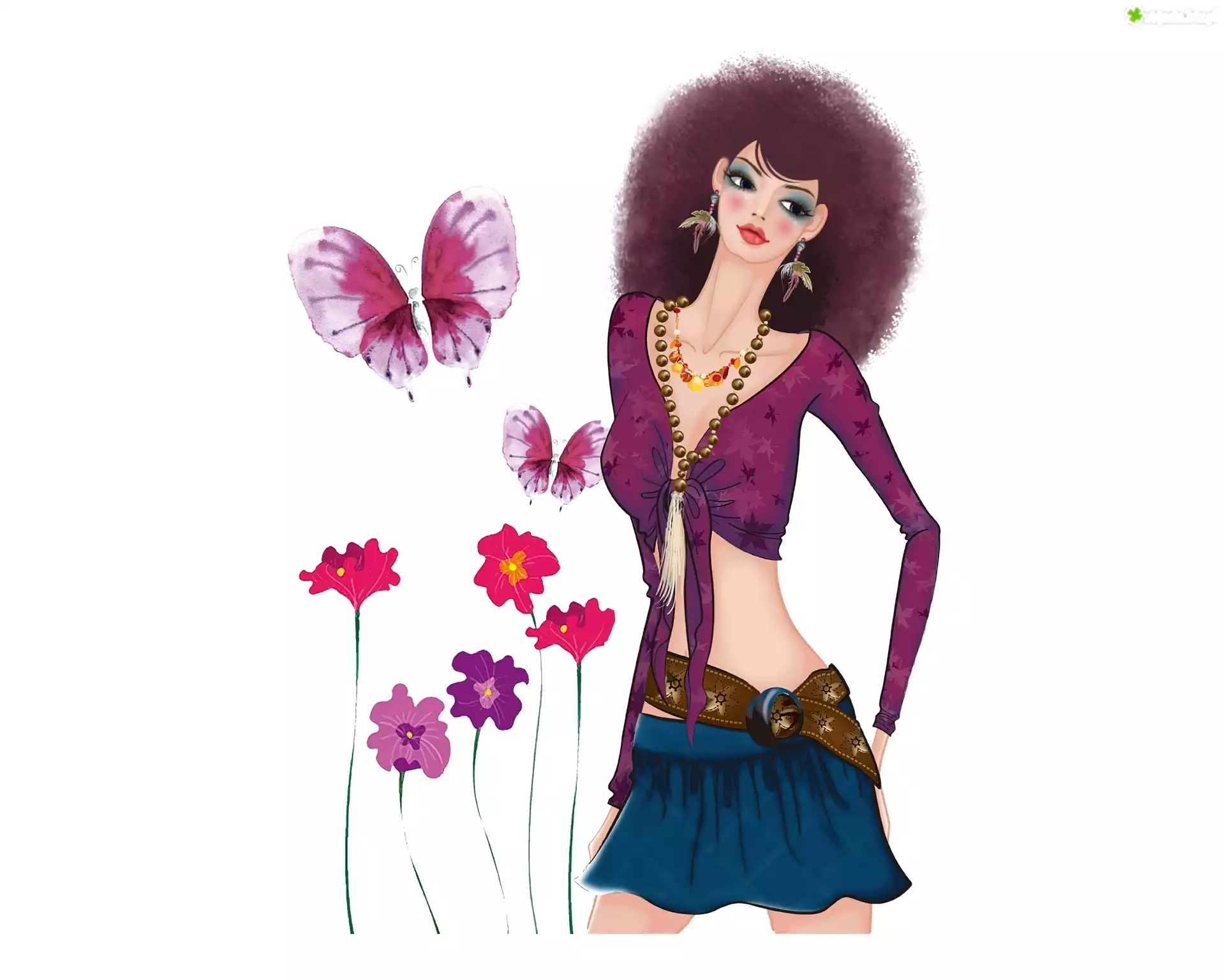 Zdjęcie Kobieta, Kwiaty, Motyl