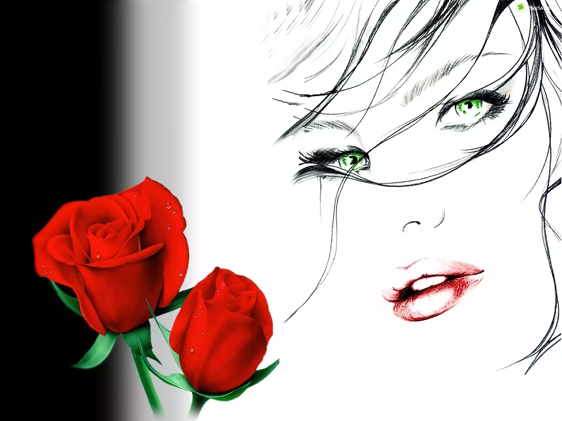 Zdjęcie, Kobieta, Kwiaty, Róże
