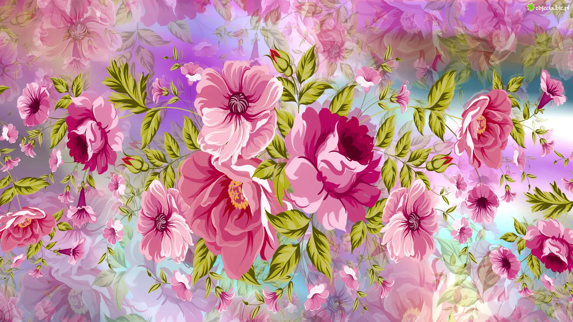 Zdjęcie Kwiaty, Róże, Grafika 2D, Kolorowe tło
