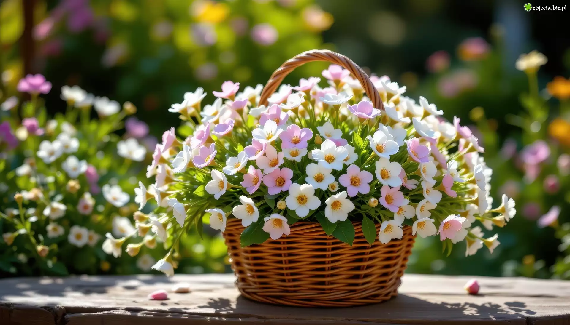Zdjęcie, Rozwinięte, Białe, Różowe, Kwiaty, Wiklinowy, Koszyk