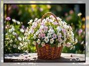Zdjęcie Rozwinięte, Białe, Różowe, Kwiaty, Wiklinowy, Koszyk