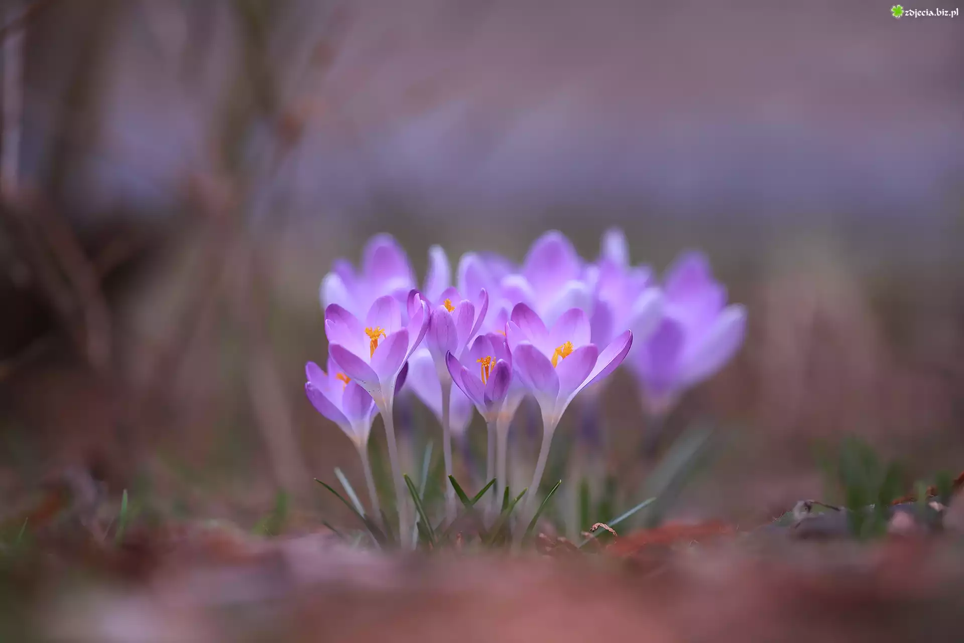 Zdjęcie Krokusy, Kępka, Fioletowe, Kwiaty