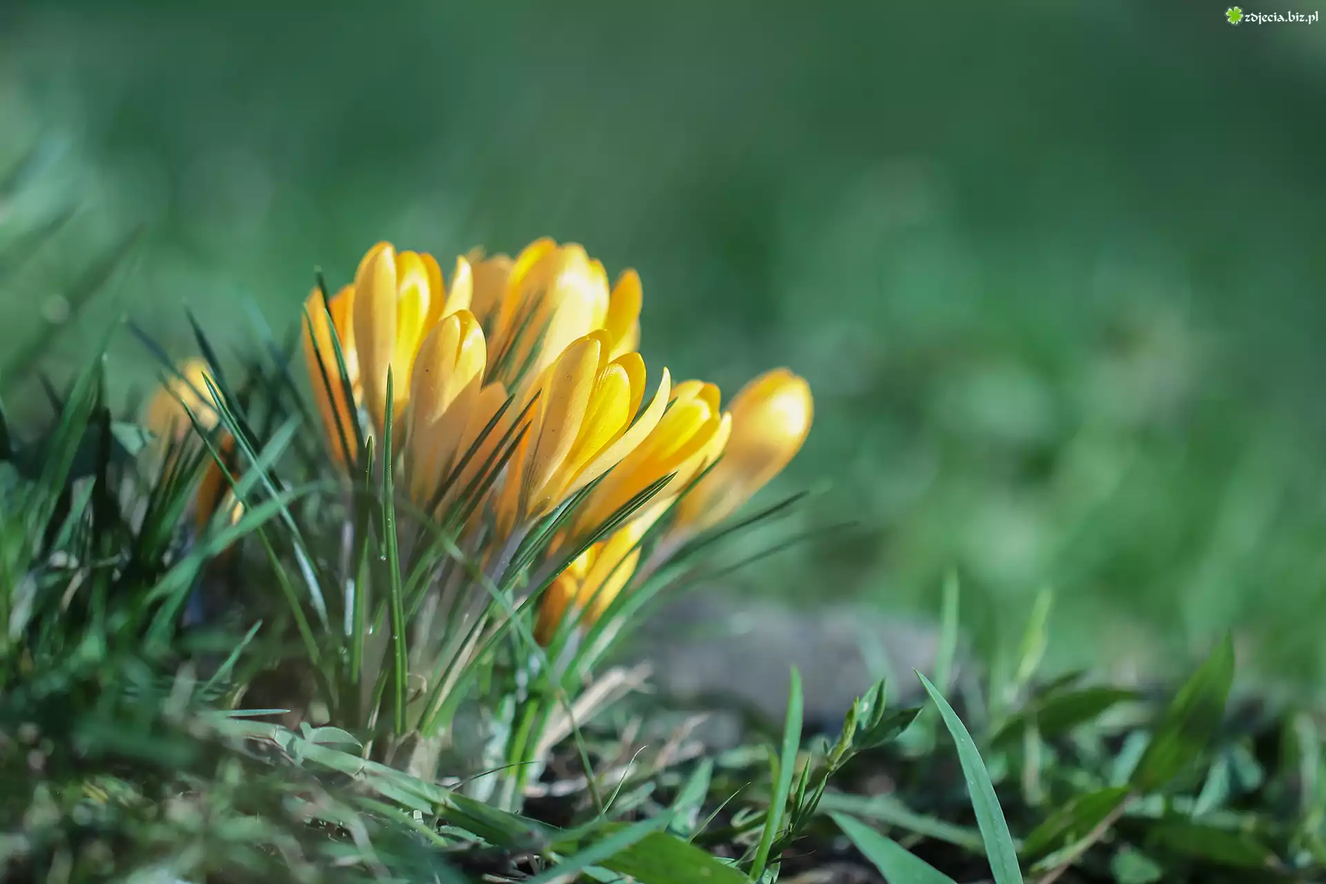 Zdjęcie Żółte, Krokusy, Kwiaty, Kępka