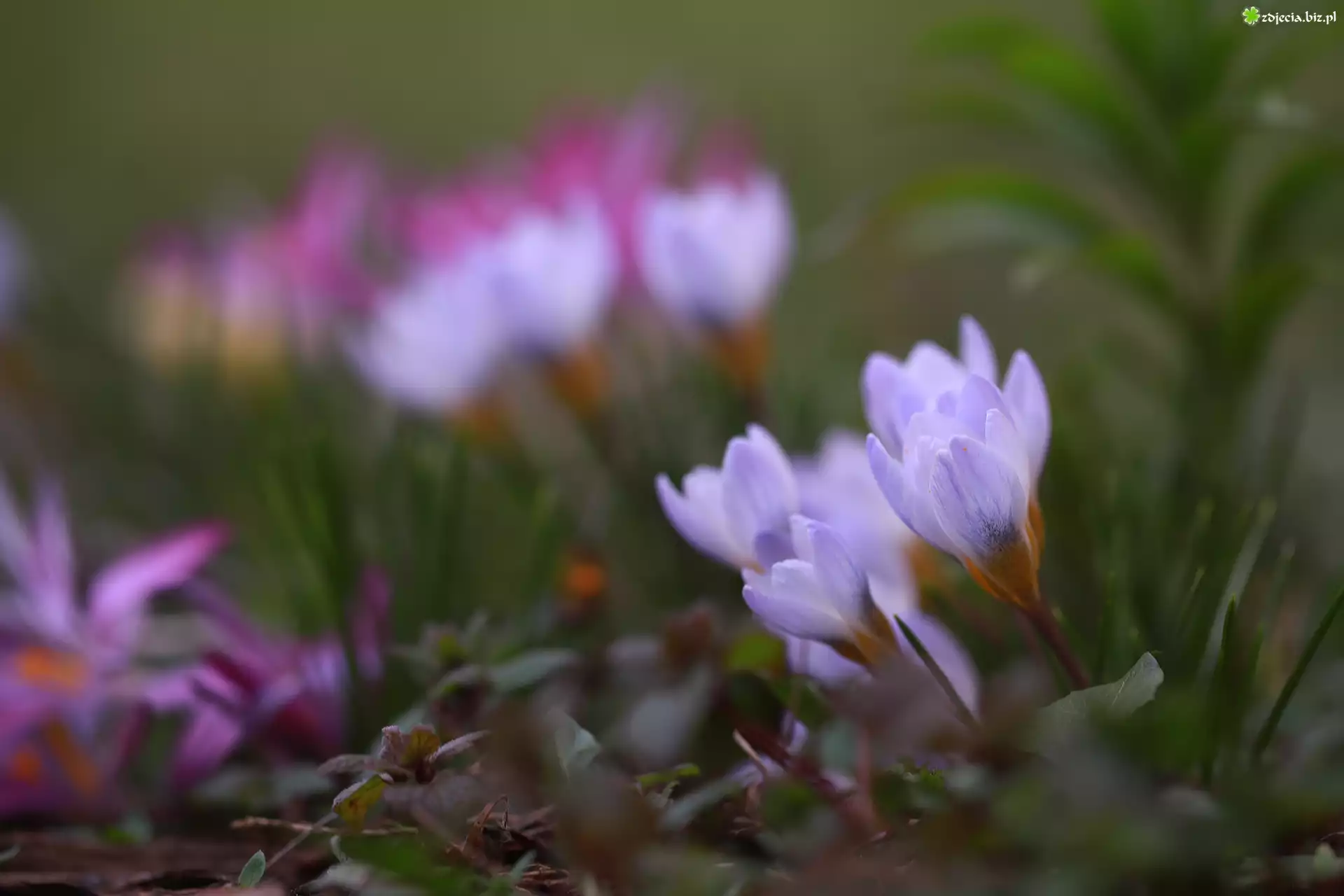 Zdjęcie Krokusy, Jasnofioletowe, Pochylone, Kwiaty