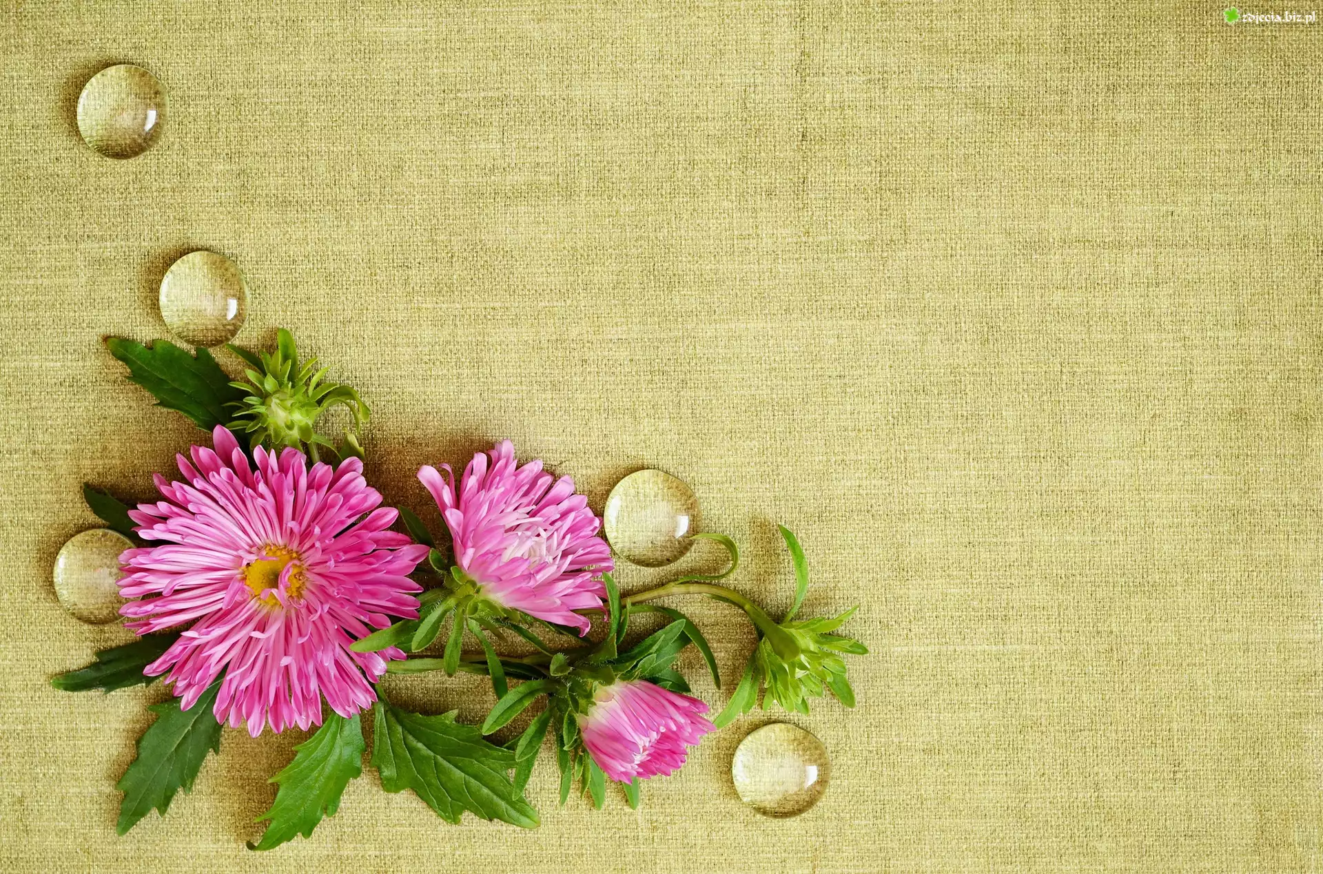 Zdjęcie, Kwiaty, Astry, Krople, Tkanina