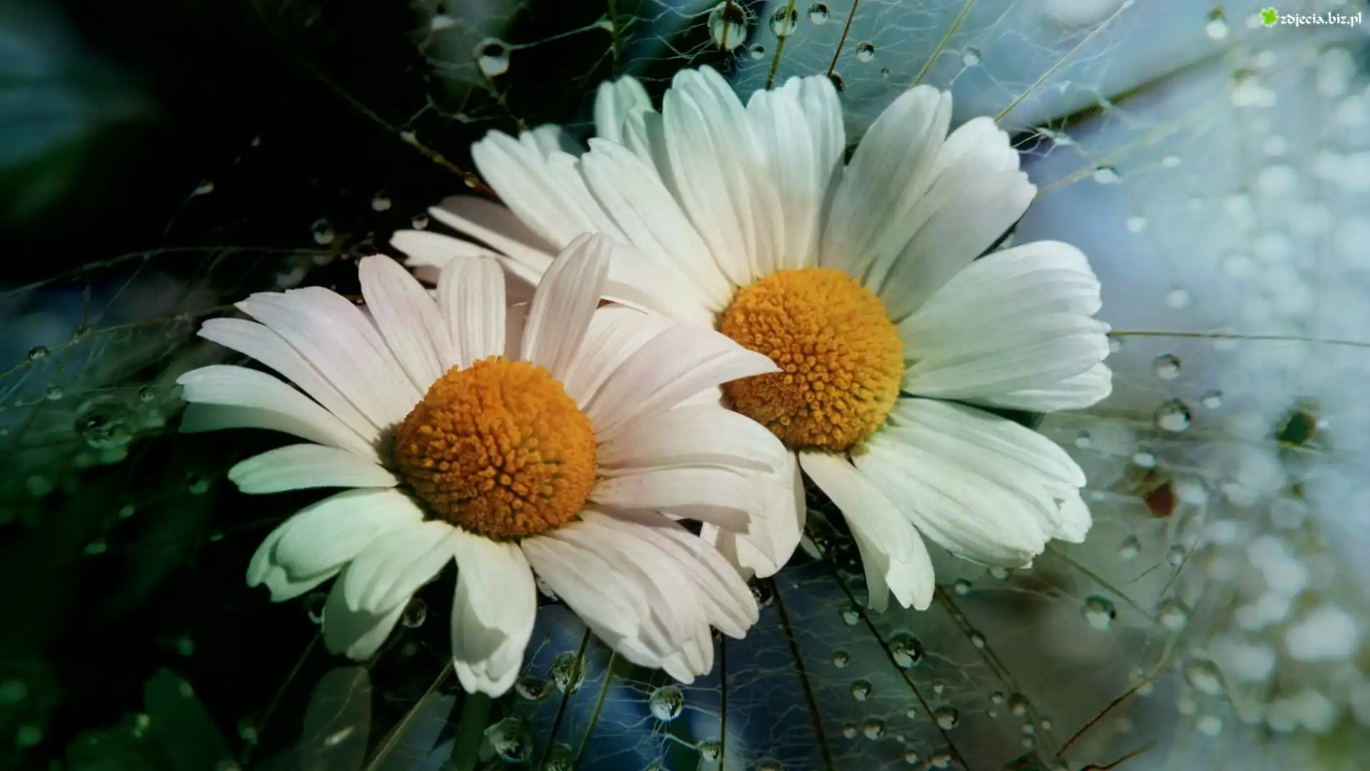 Zdjęcie Kwiaty, Margerytki, Rosa, Krople, Wody