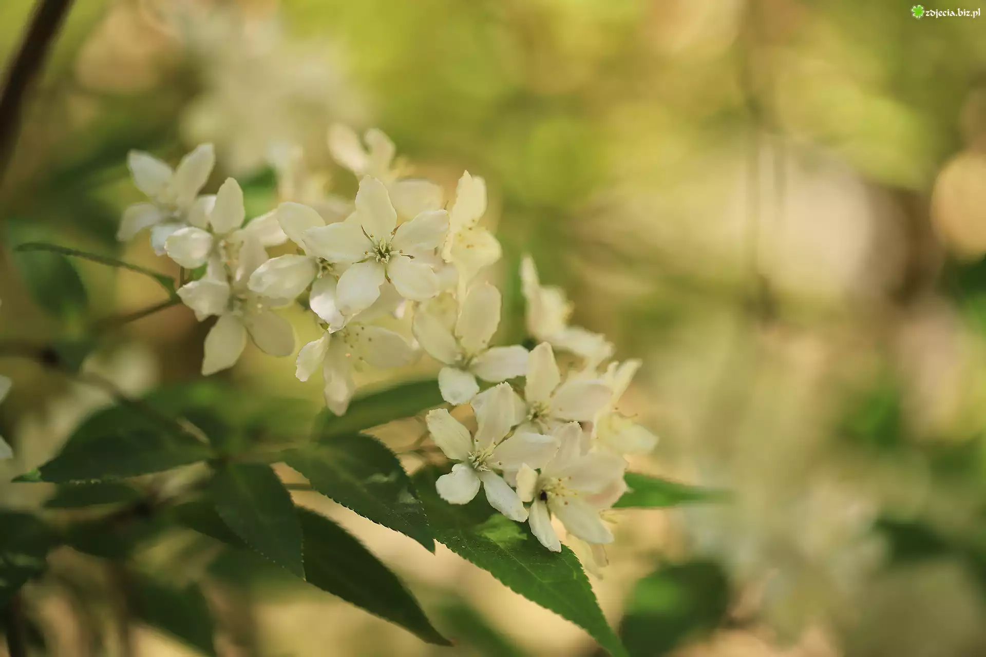Zdjęcie, Krzew, Gałązki, Białe, Kwiaty