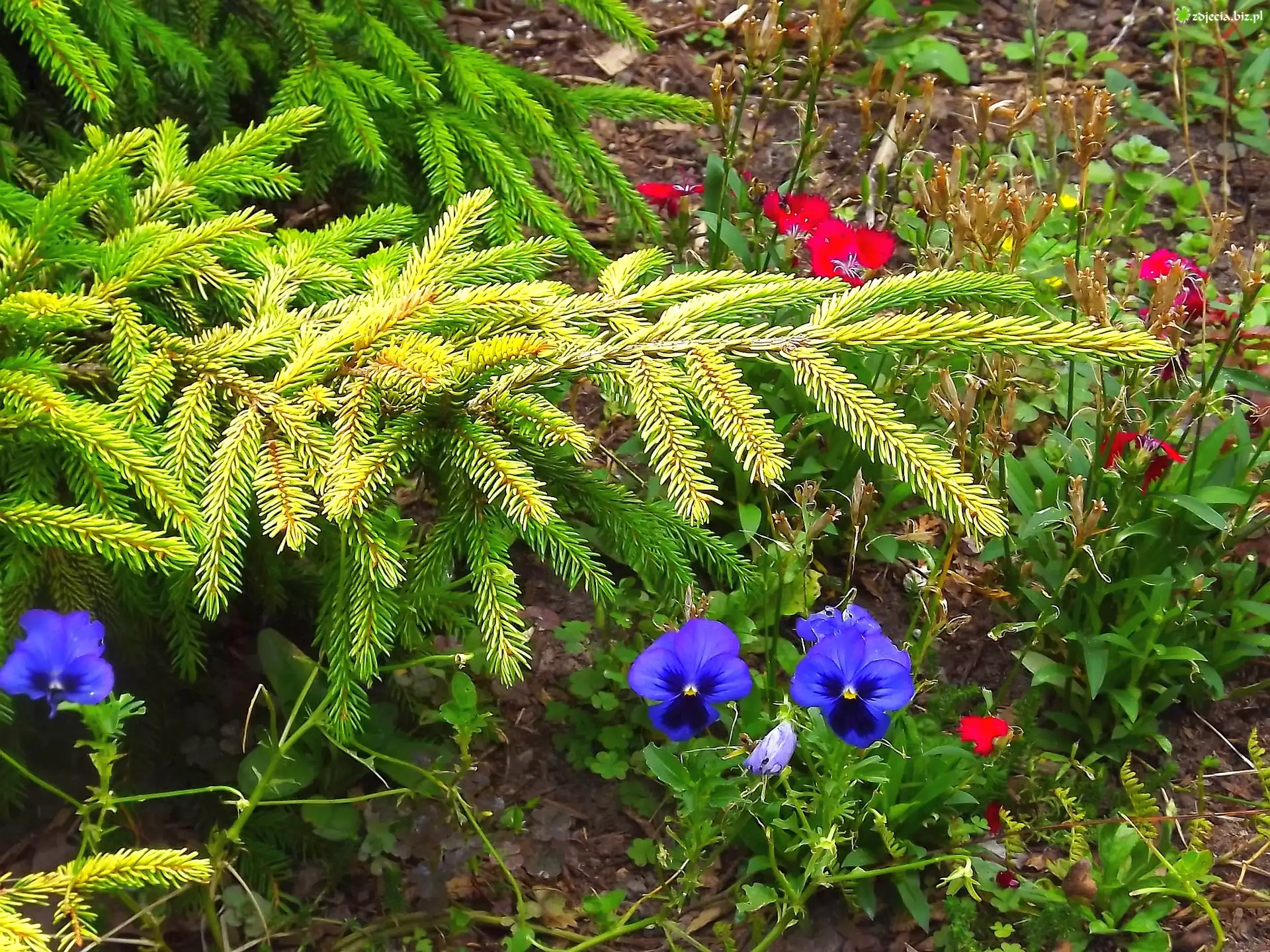 Zdjęcie Krzewy, Kwiaty, Bratki