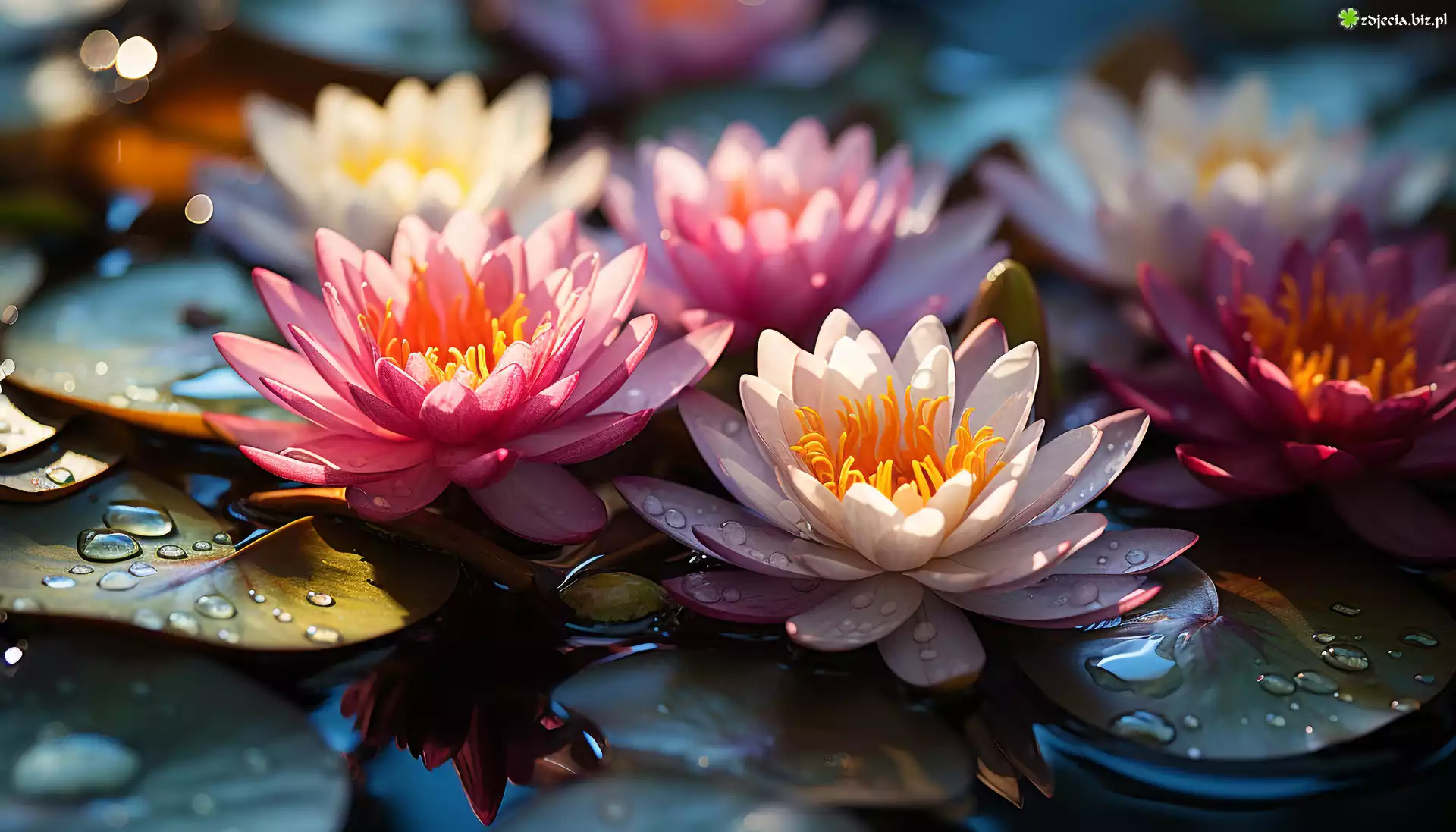 Zdjęcie Kolorowe, Kwiaty, Lilie wodne, Liście