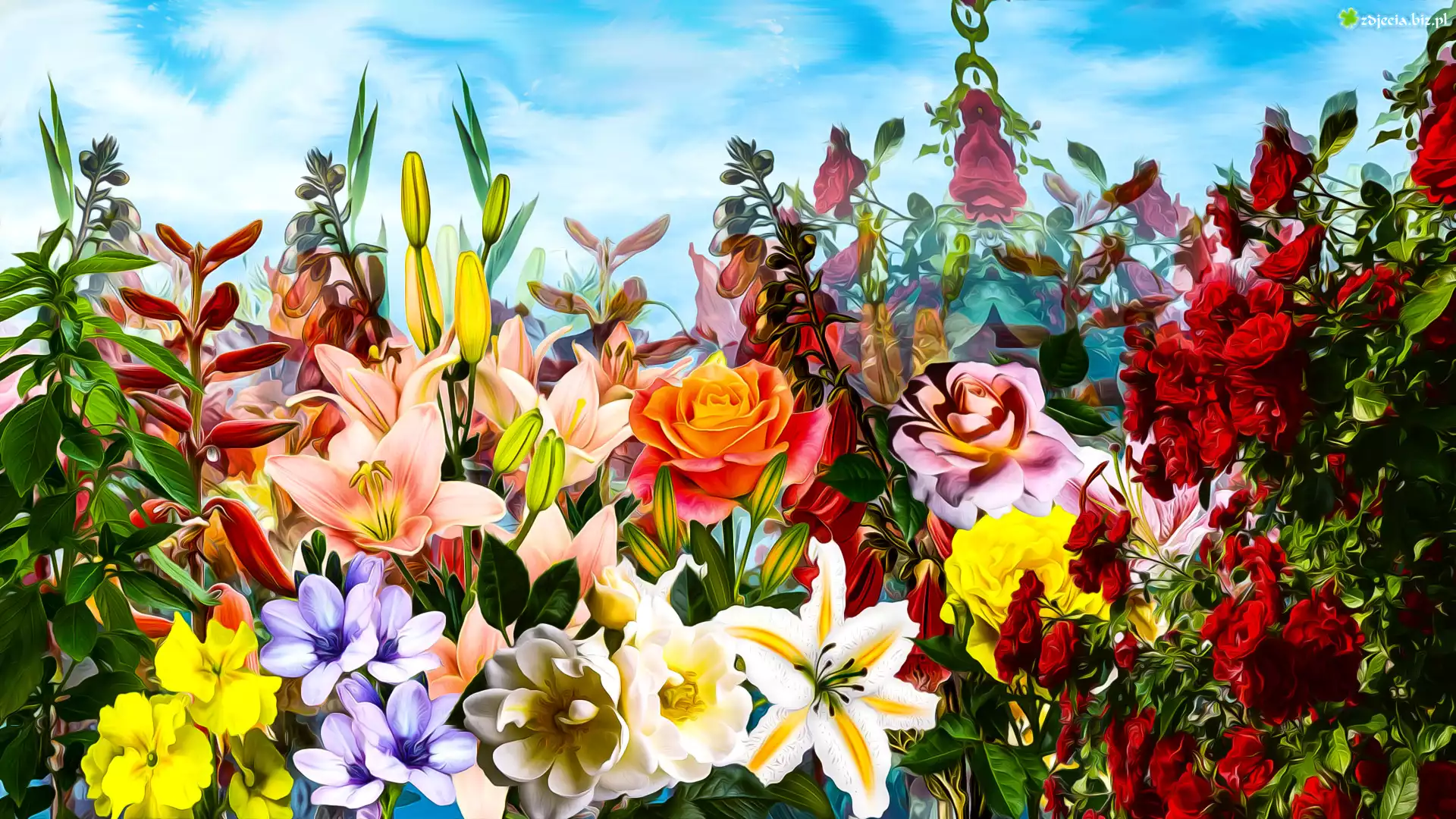 Zdjęcie Kwiaty, Róże, Lilie, Grafika