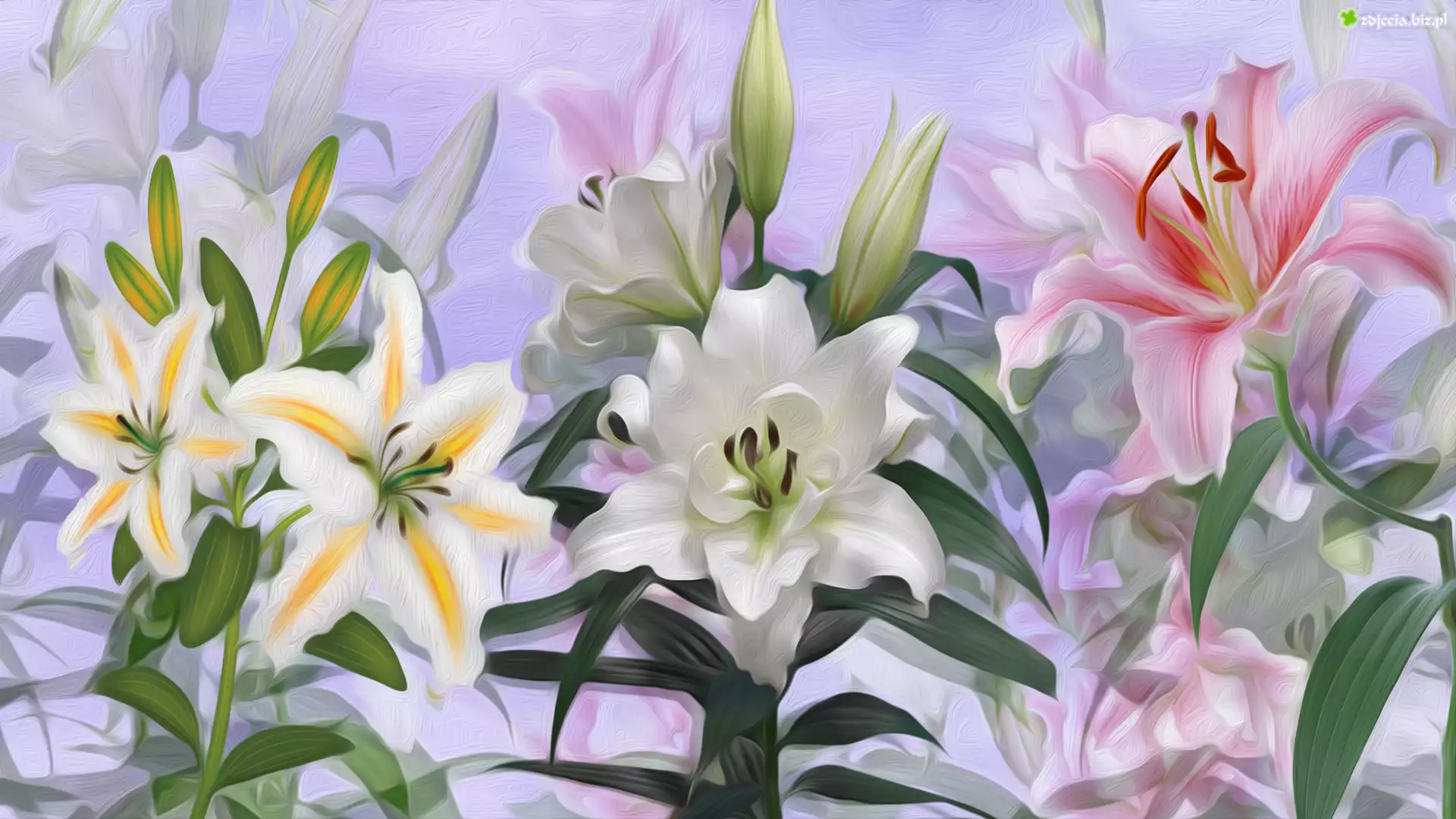 Zdjęcie Kwiaty, Różnobarwne, Lilie, Grafika
