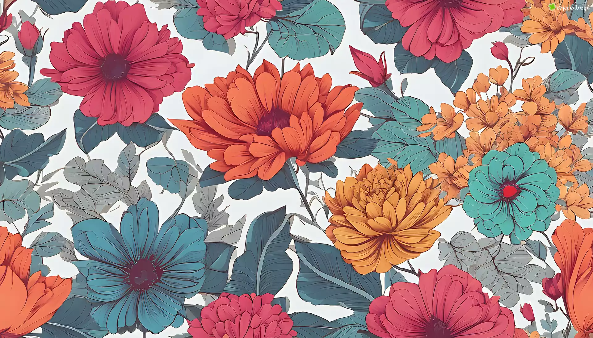 Zdjęcie Kolorowe, Kwiaty, Liście, Grafika 2D