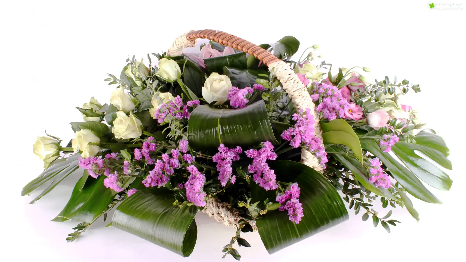 Zdjęcie Kwiaty, Bukiet, Róże, Zatrwian, Liście, Koszyk