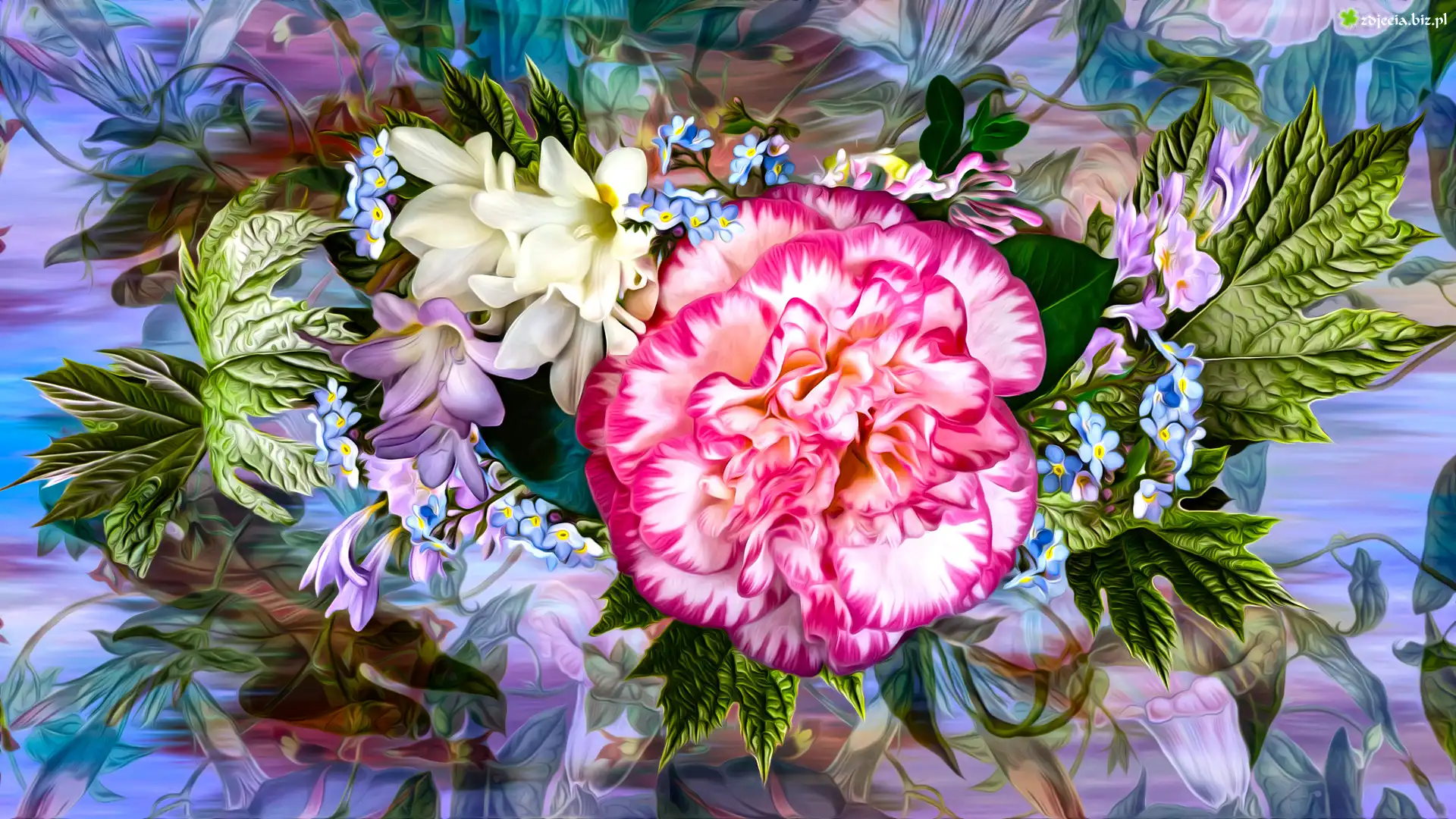 Zdjęcie Kwiaty, Kamelia, Listki, Grafika