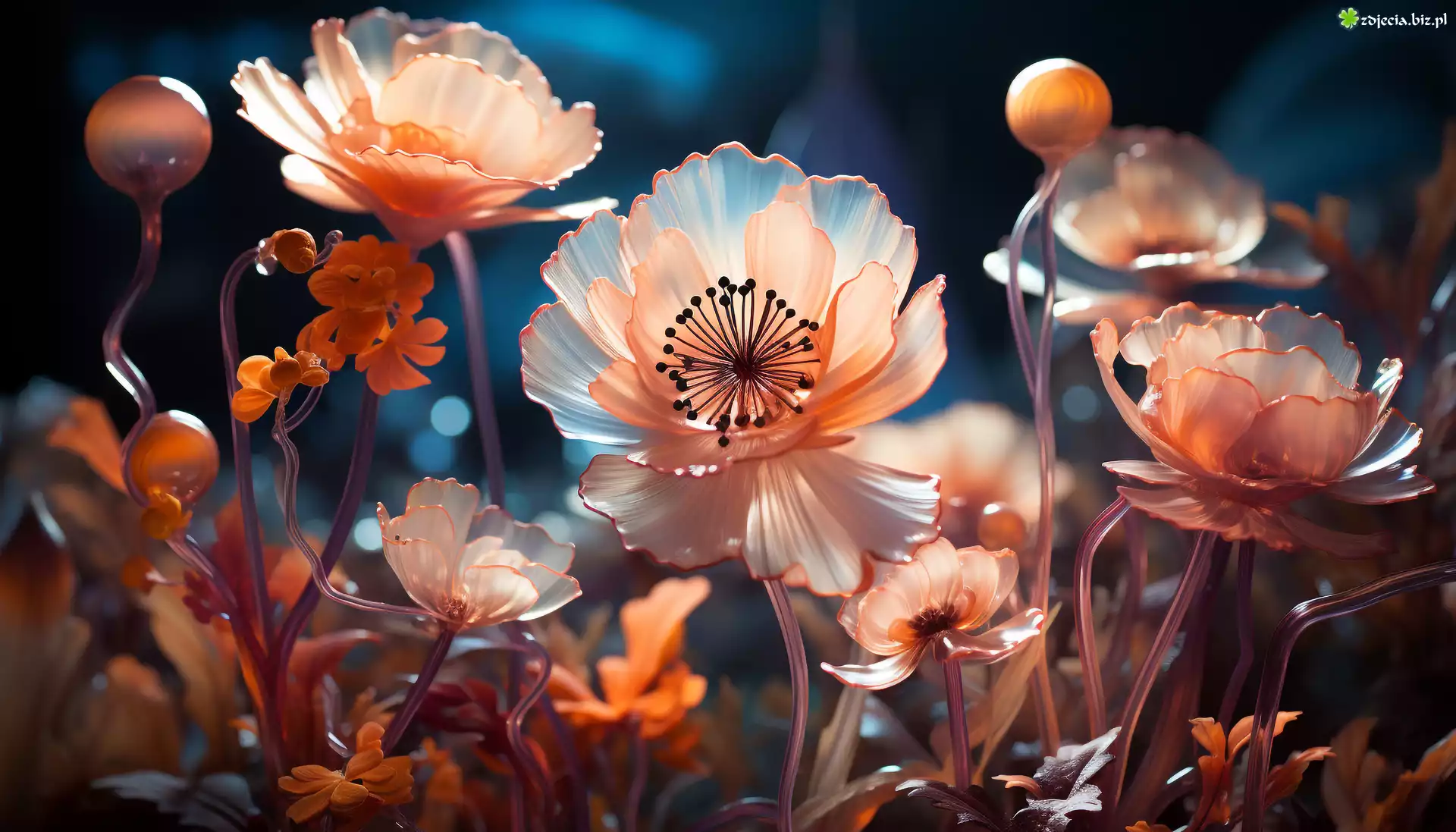 Zdjęcie Rozwinięte, Kwiaty, Maki, Pąki, Grafika