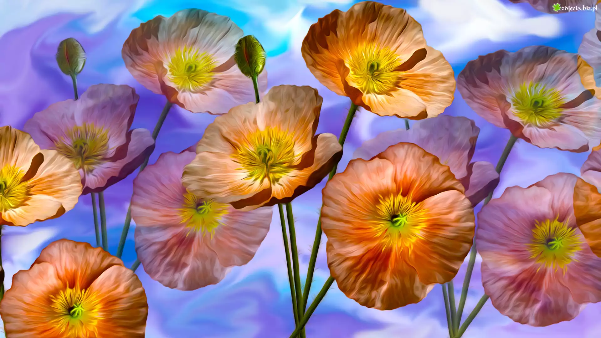 Zdjęcie Kwiaty, Rozświetlone, Maki, Grafika