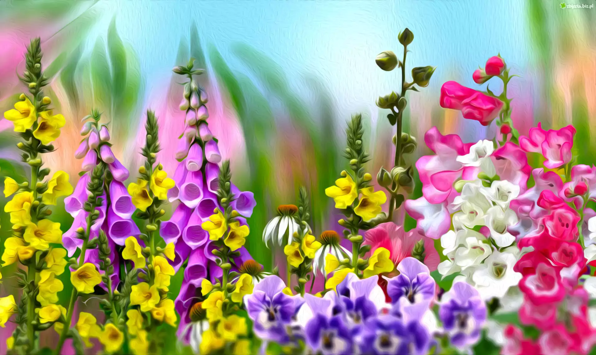 Zdjęcie Kwiaty, Naparstnica, Bratki, Malwy, Grafika