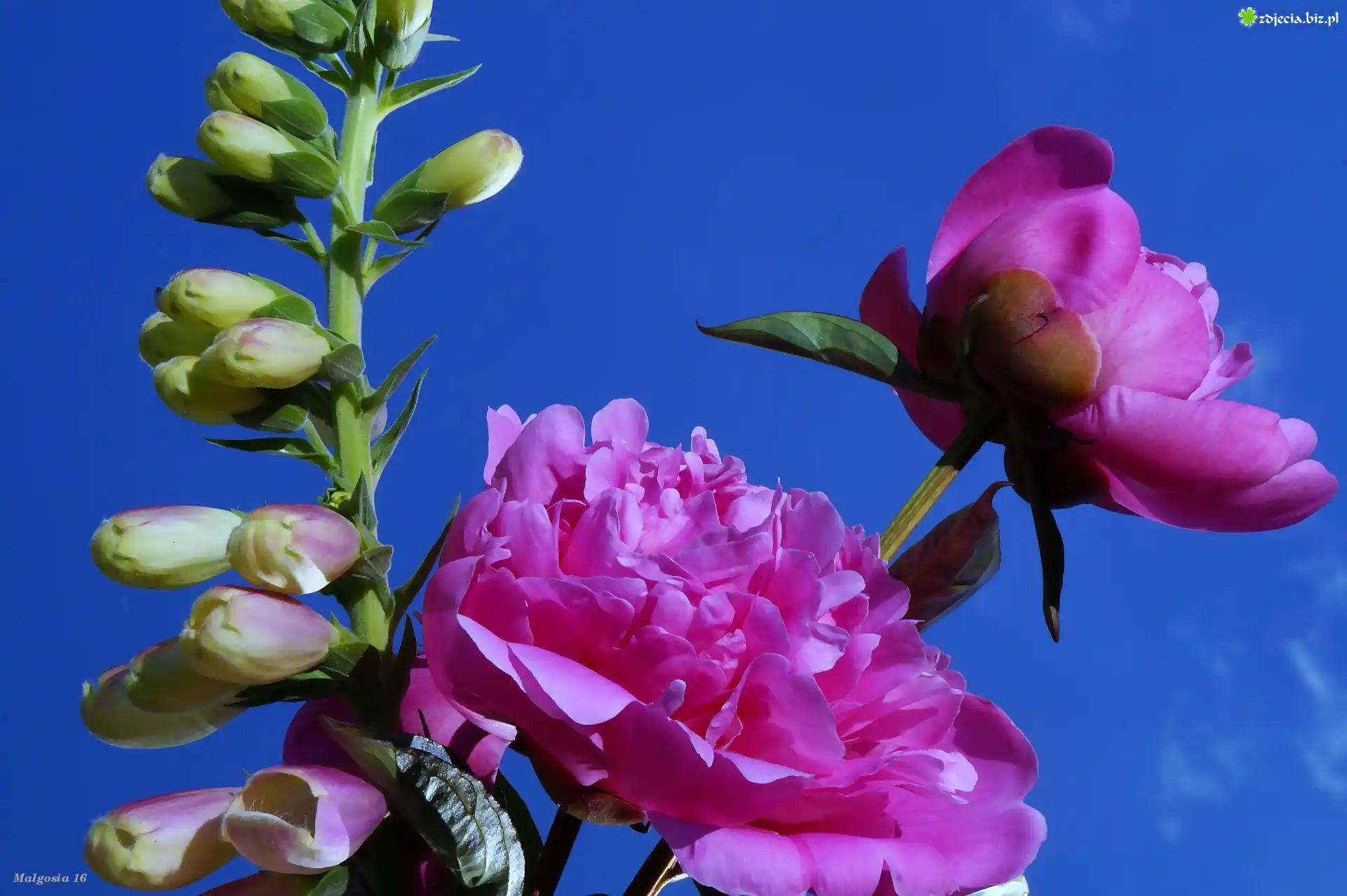 Zdjęcie, Kwiaty, Bukiet, Piwonie, Naparstnica, Niebo